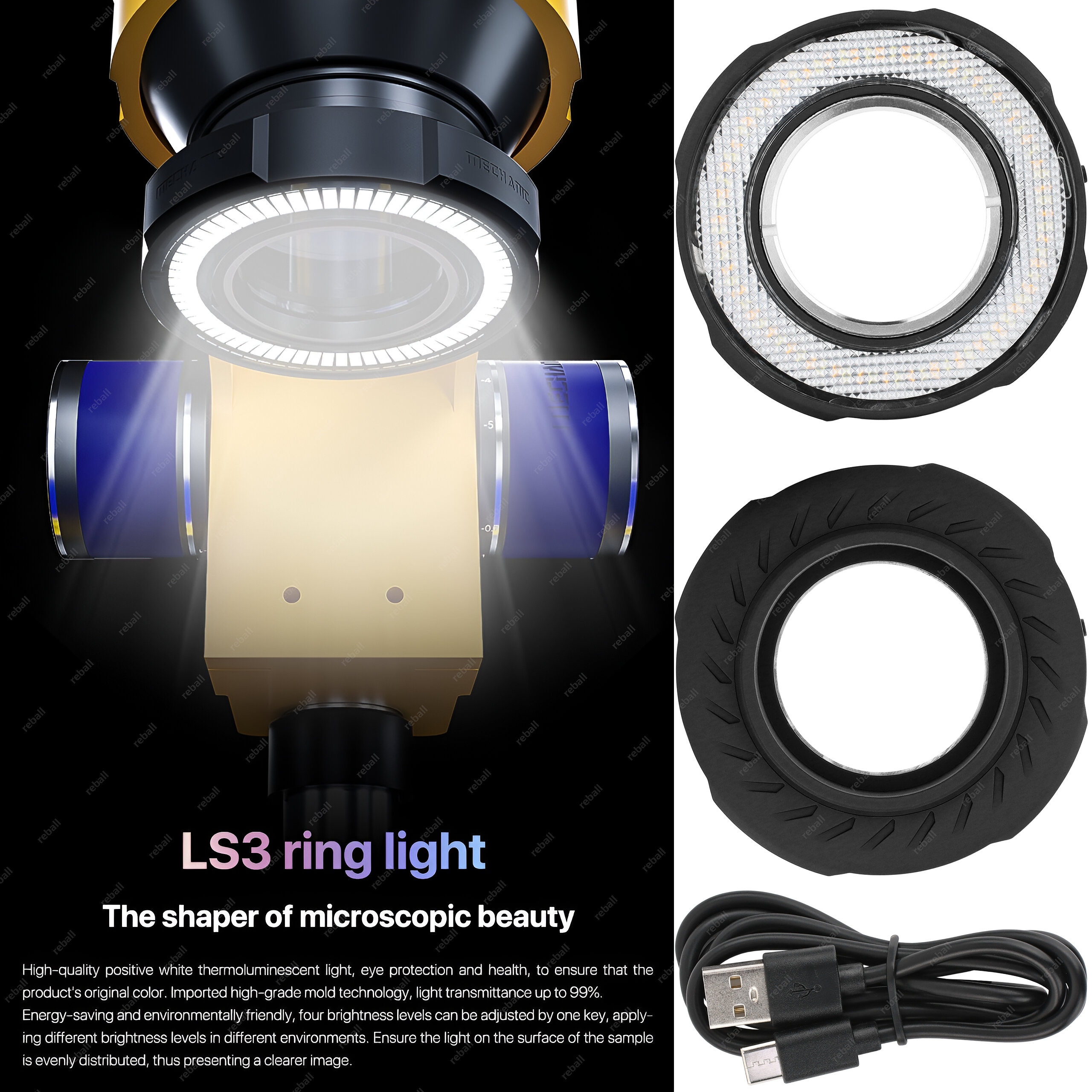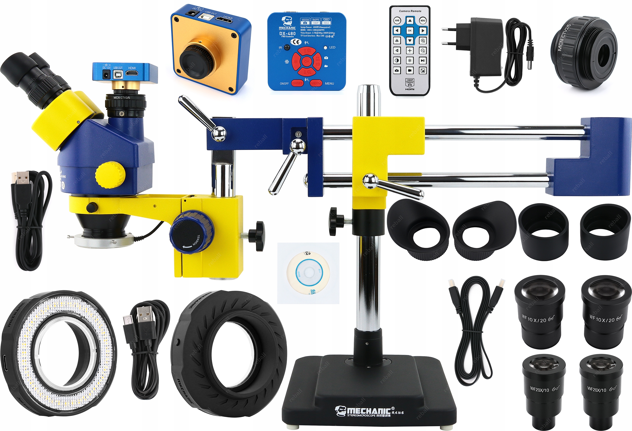- ✅ Трикулярних стереоскопічних мікроскопів з 7-45x та 14-90x, 360 ° Ротарі та регулювання рівня рівня,