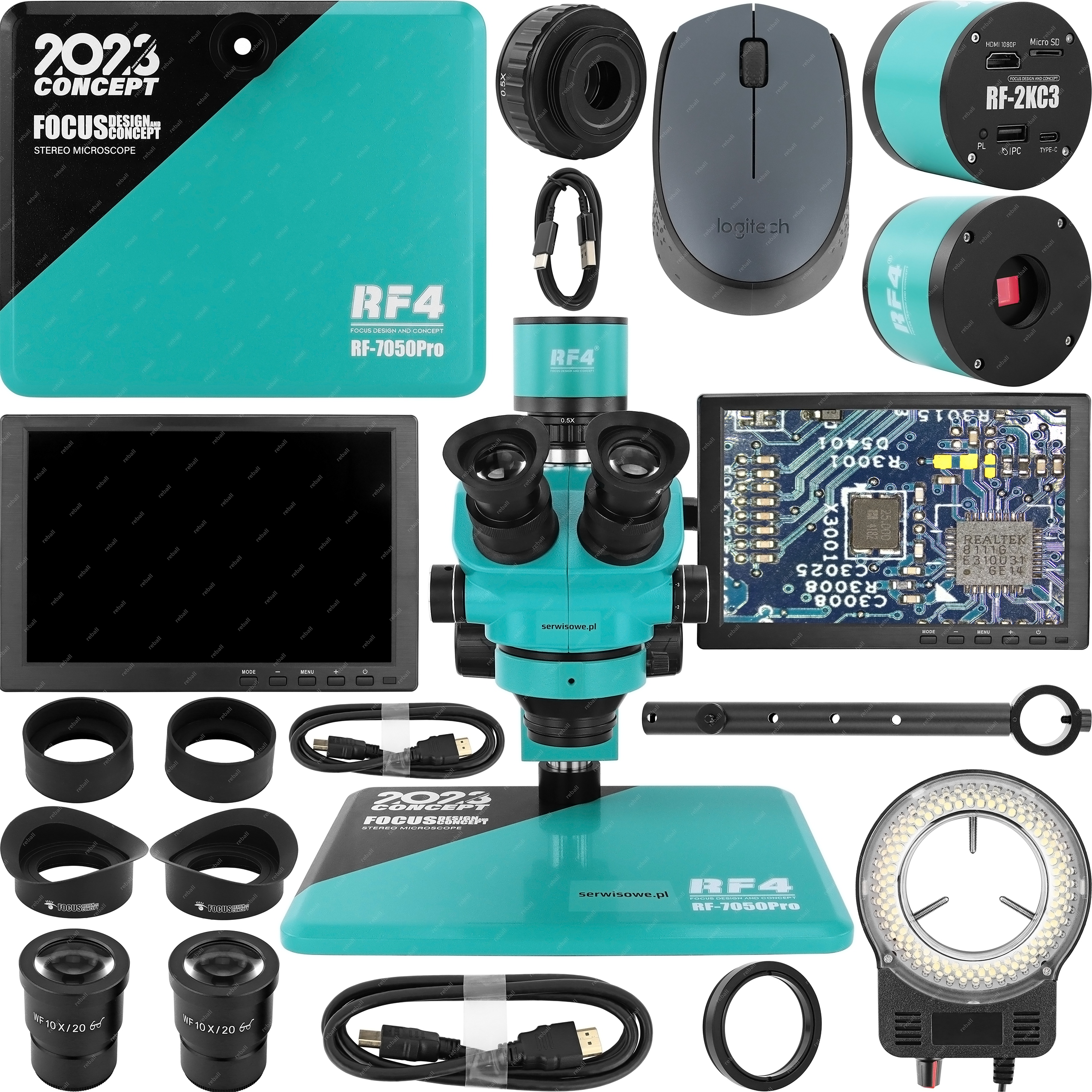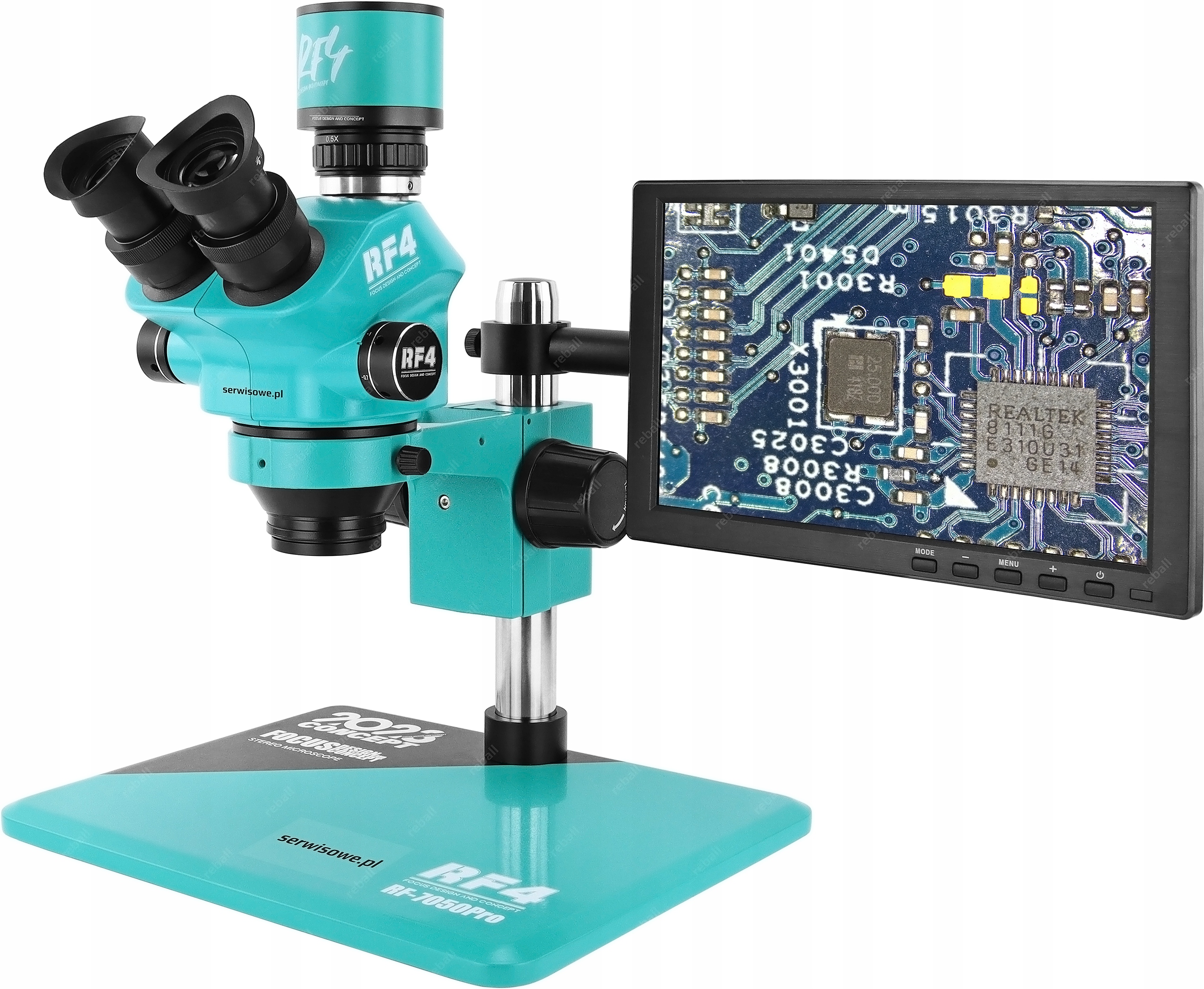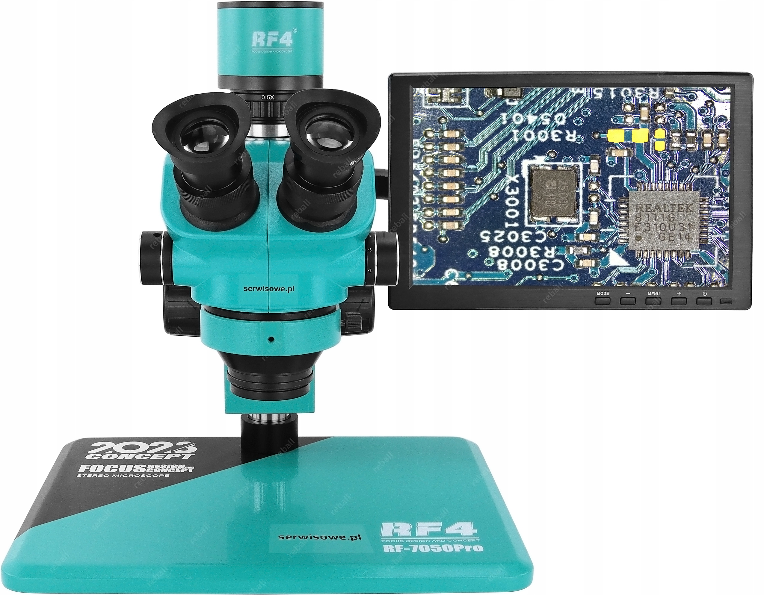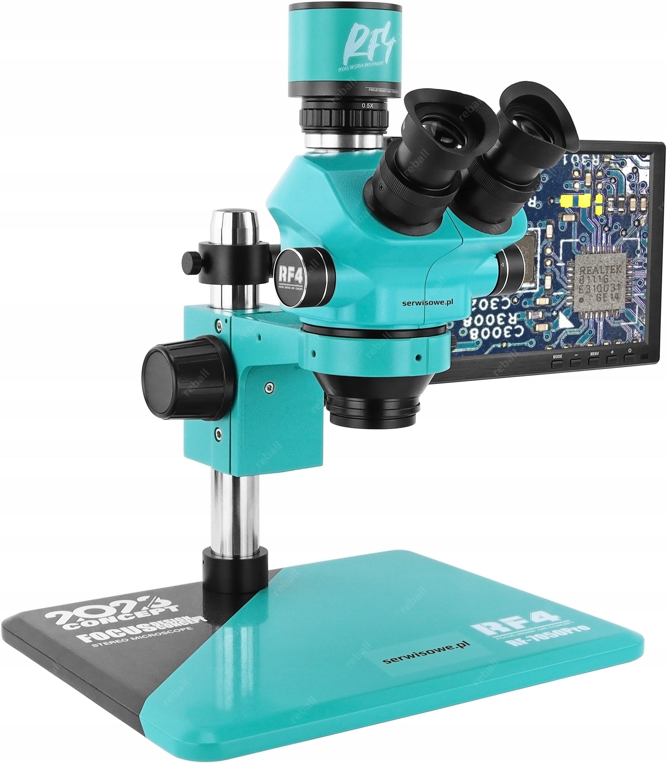 - стереоскопічний тринокулярний мікроскоп RF4 RF7050PRO з окулярами 7-50x, поворотом на 360° тримач і регулювання горизонтального та вертикального положення,