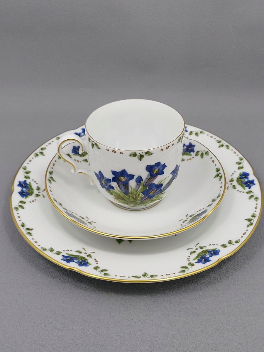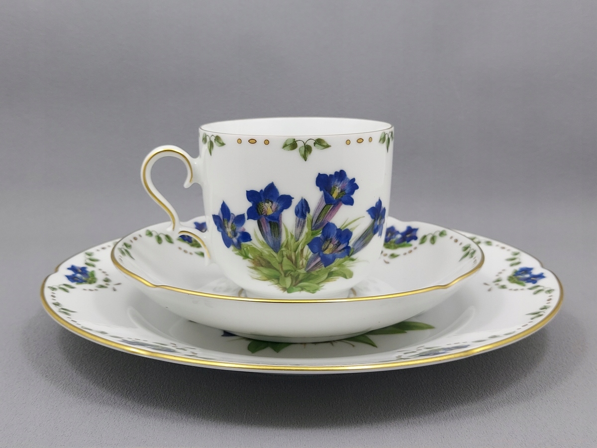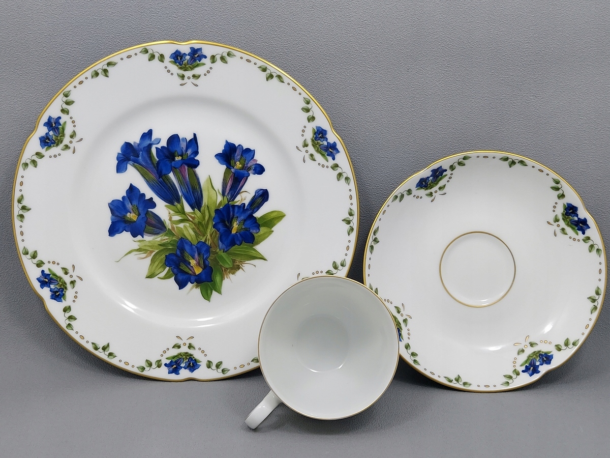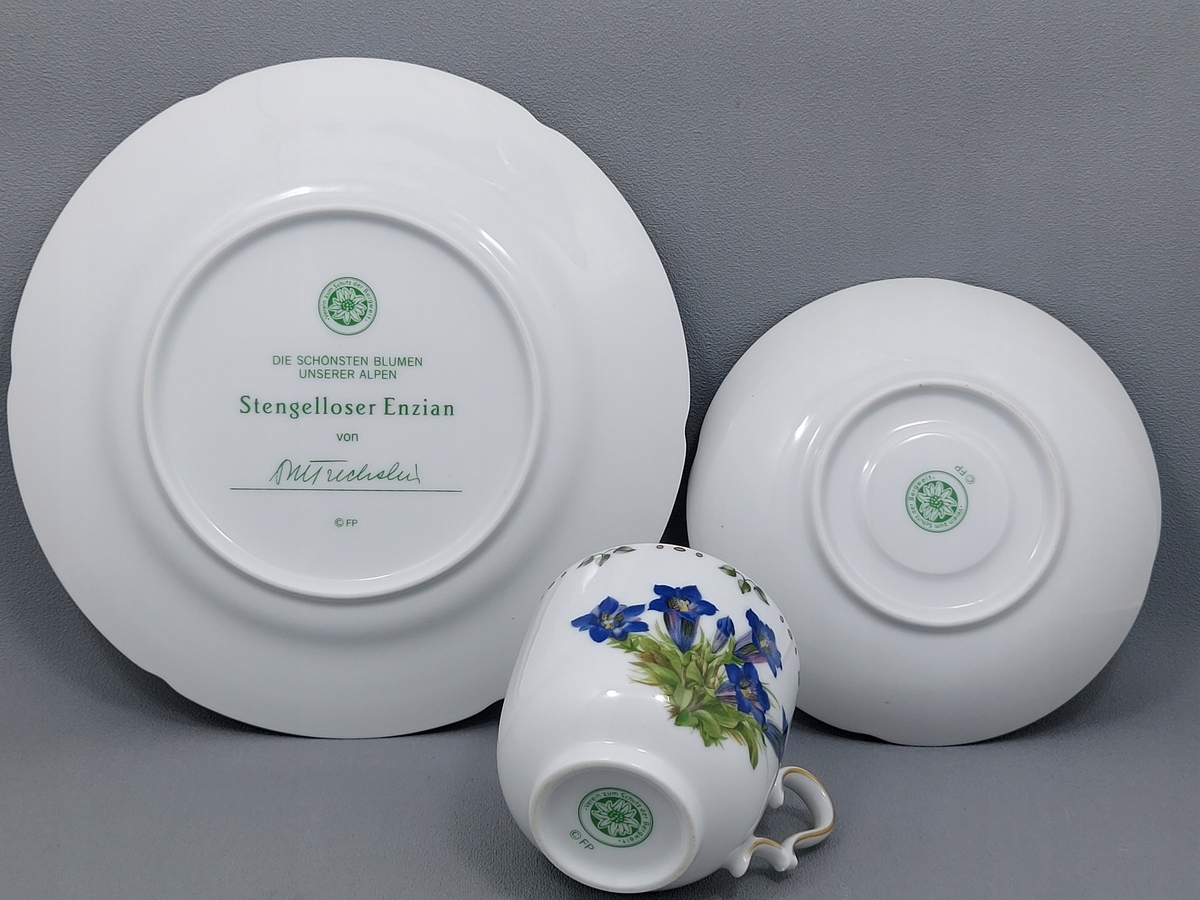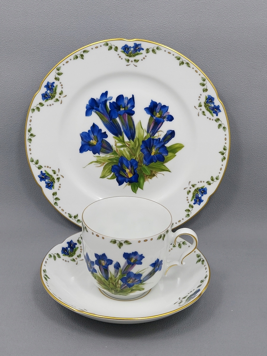 Пропозиція продажу: чашка тріо та тарілки - порцелянові альпійські квітки