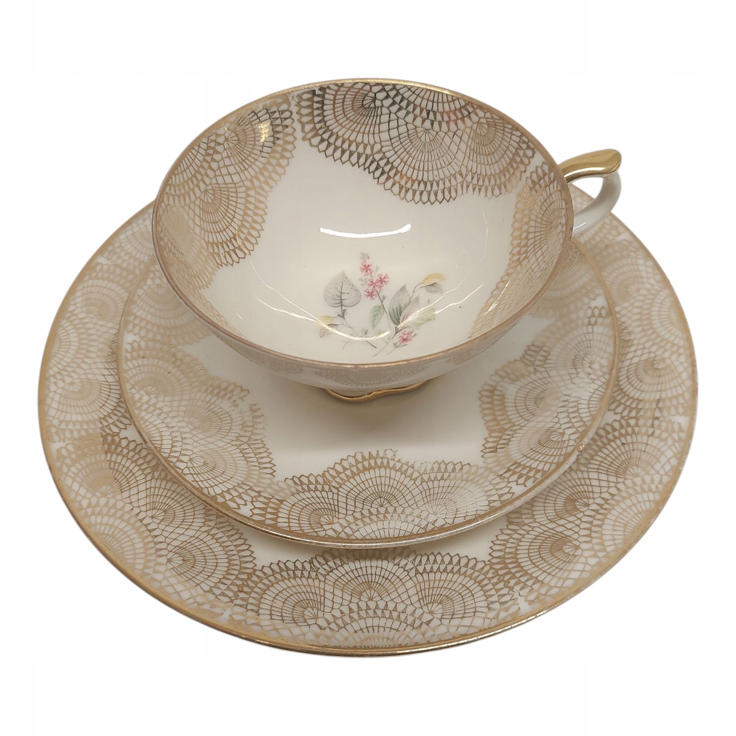 Тріо ємністю 150 мл. Пластина чашки має скол на краю, видно на фото. Мінімальні недоліки позолоти.