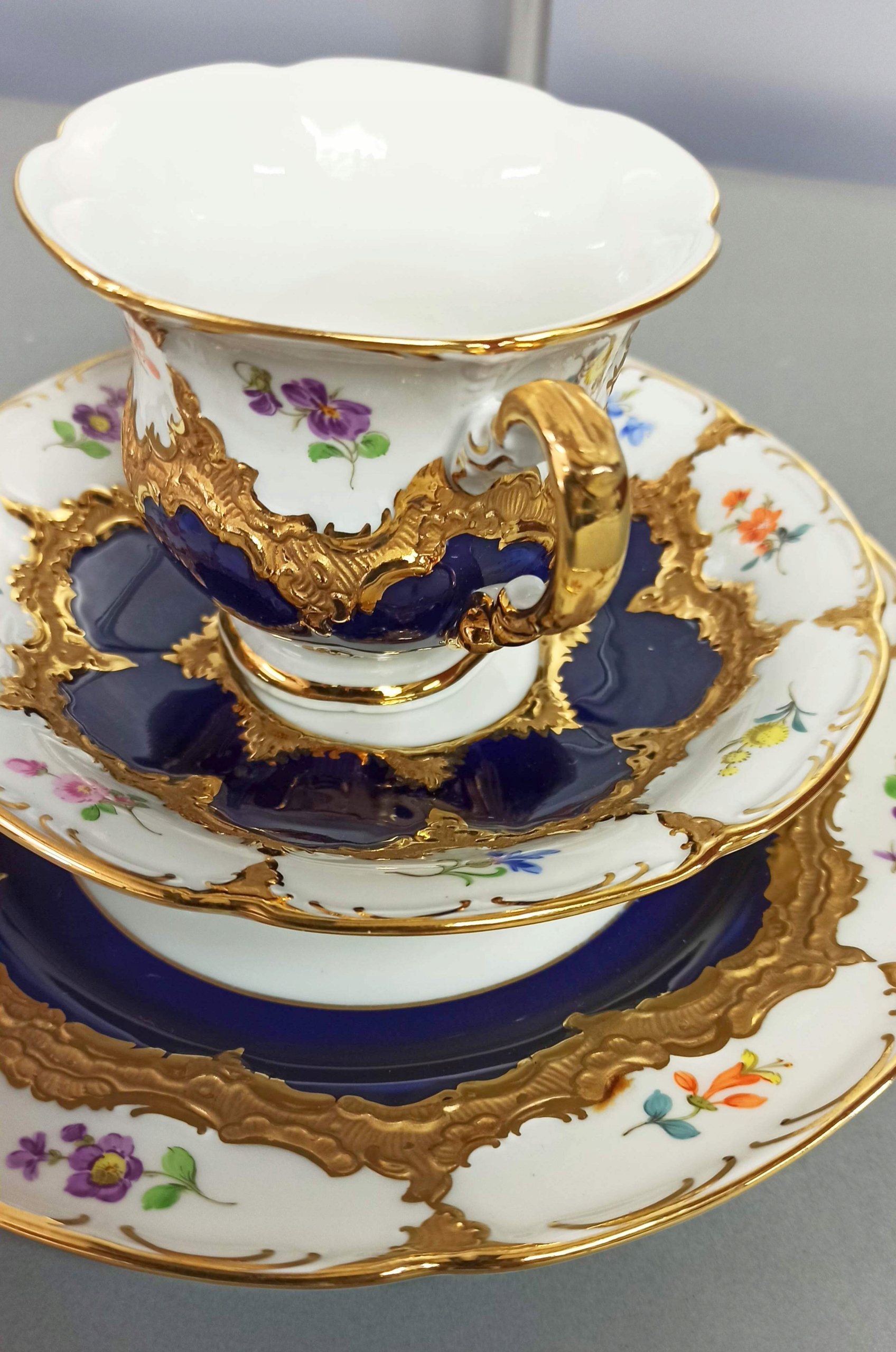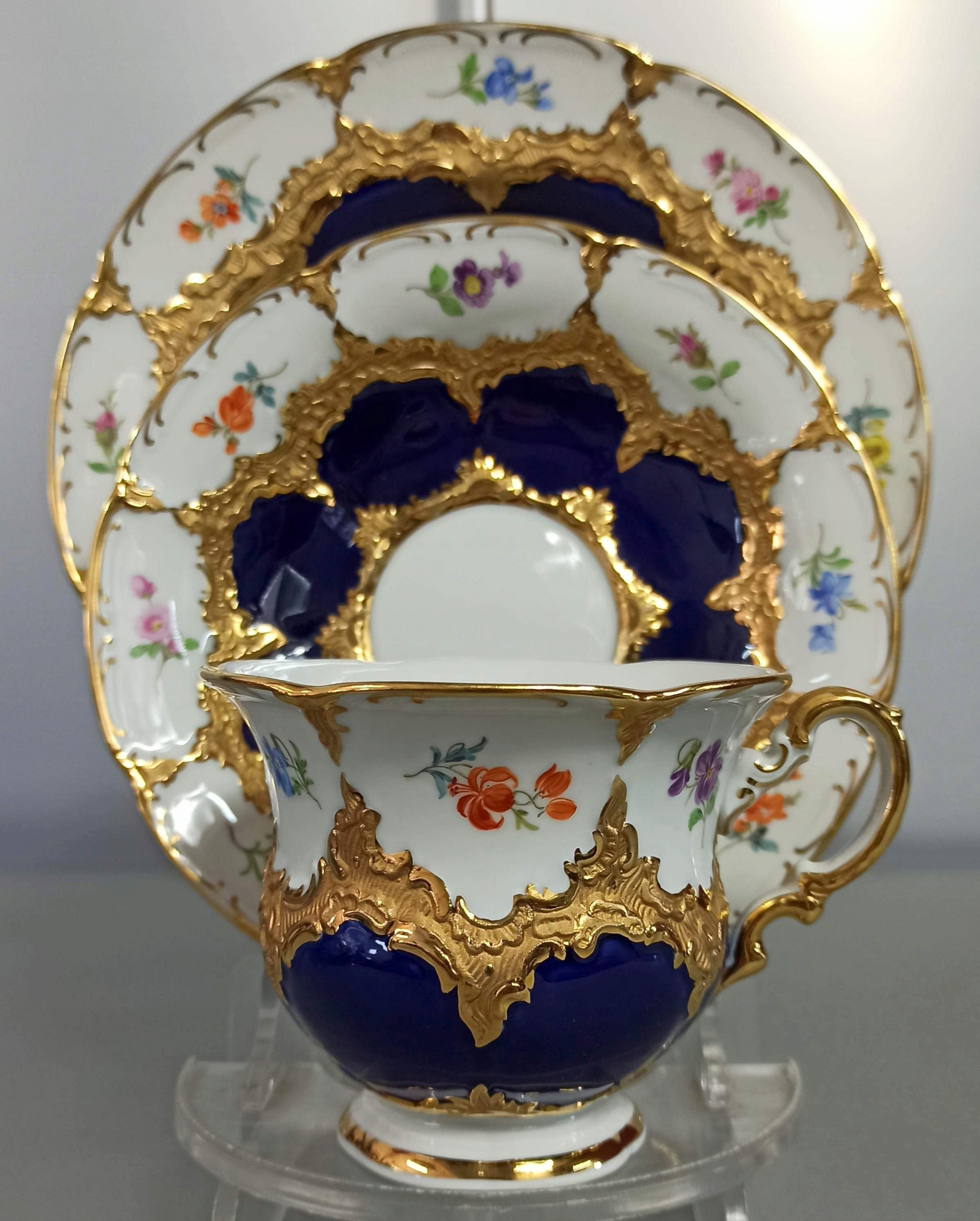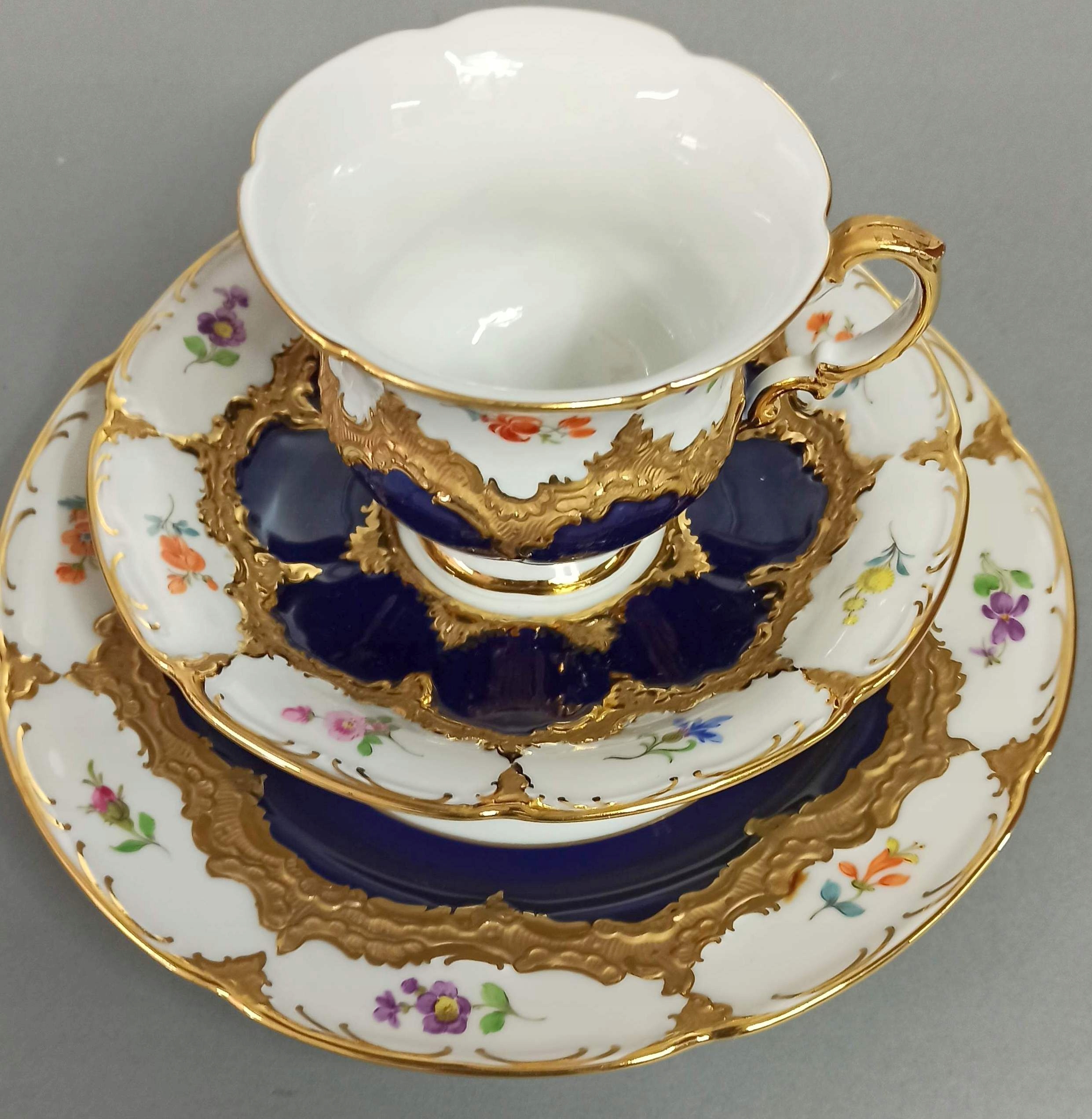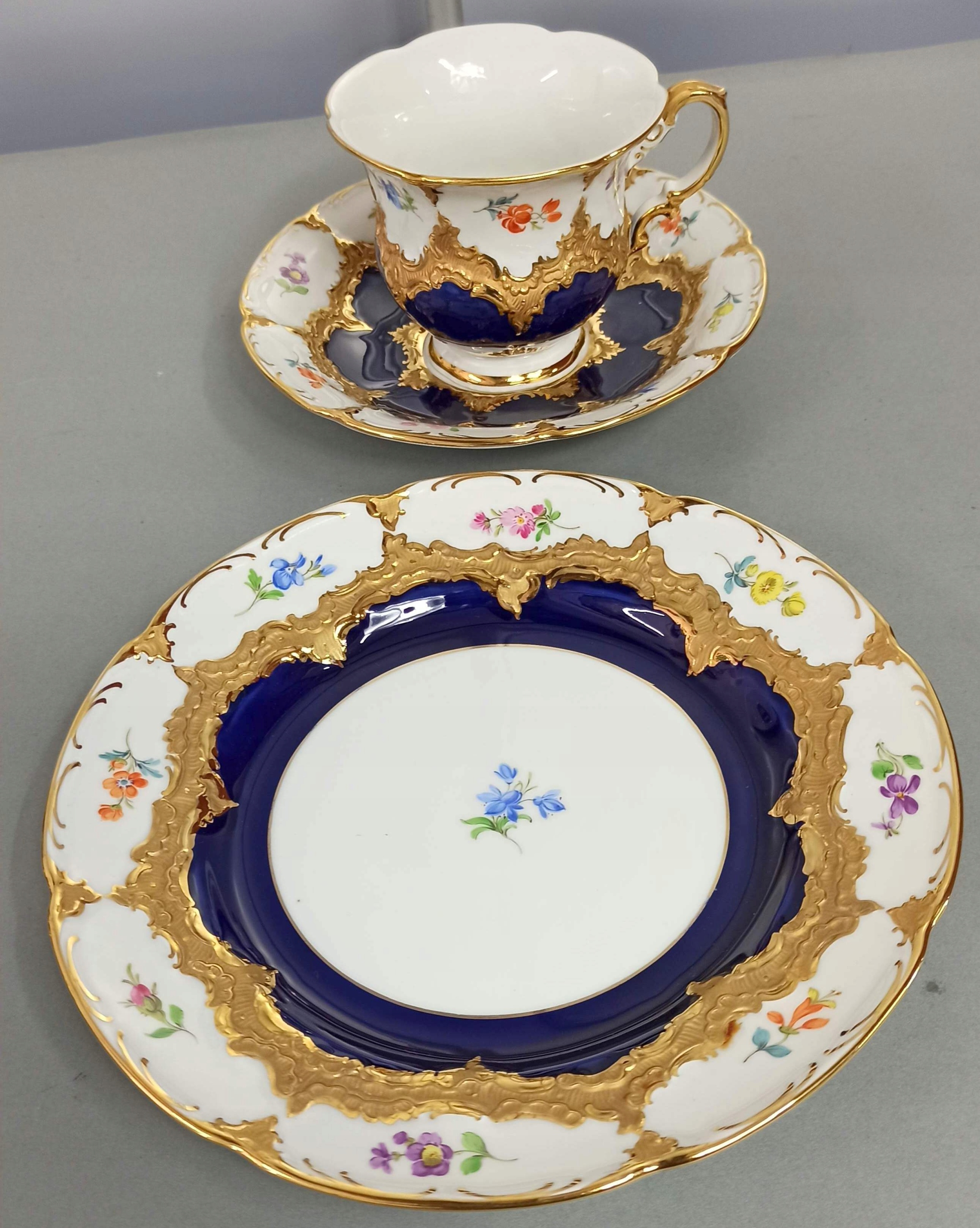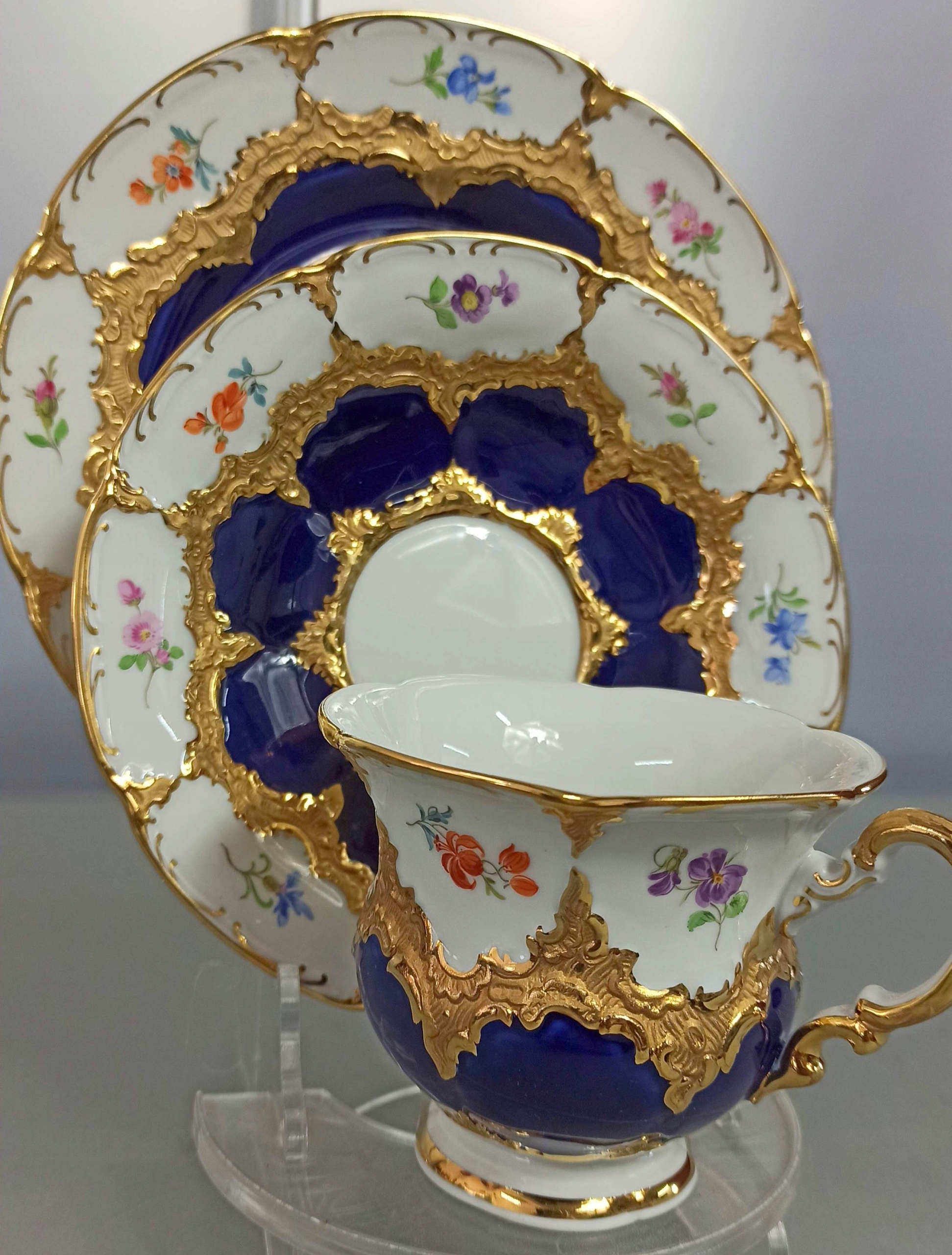 TRIO MIŚNIA B-FORM ZESTAW KOBALT KWIATKI MEISSEN