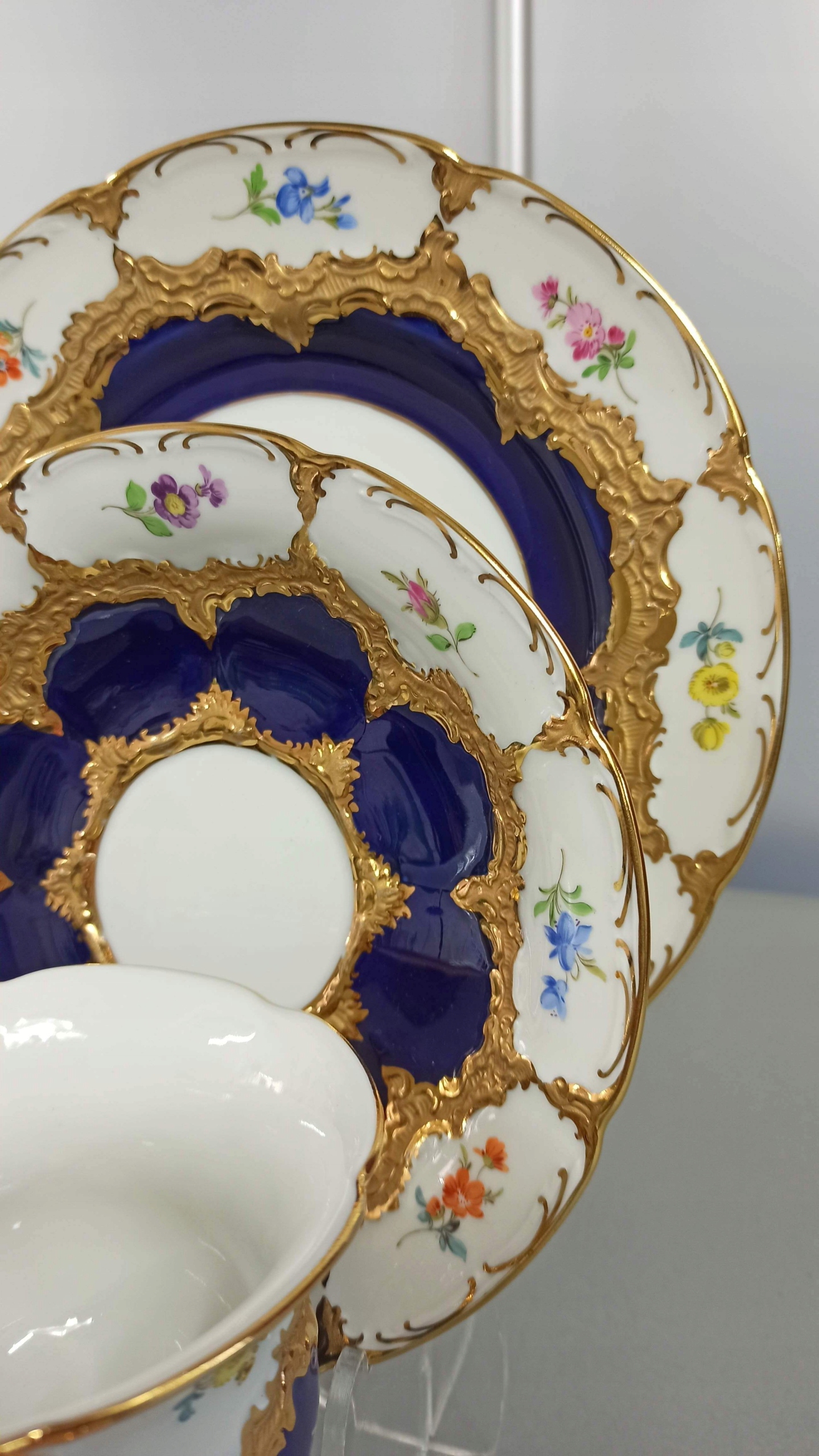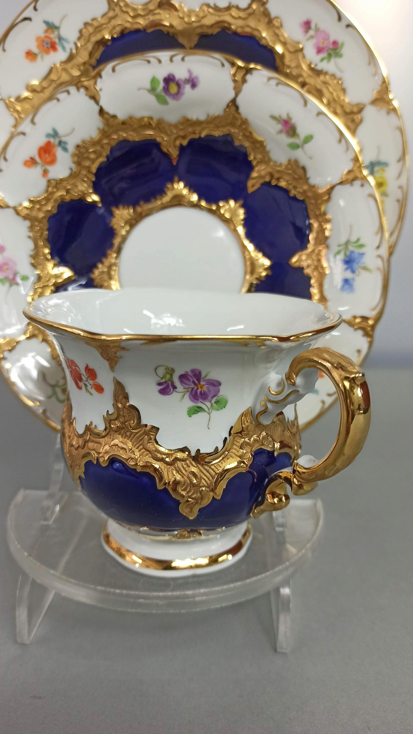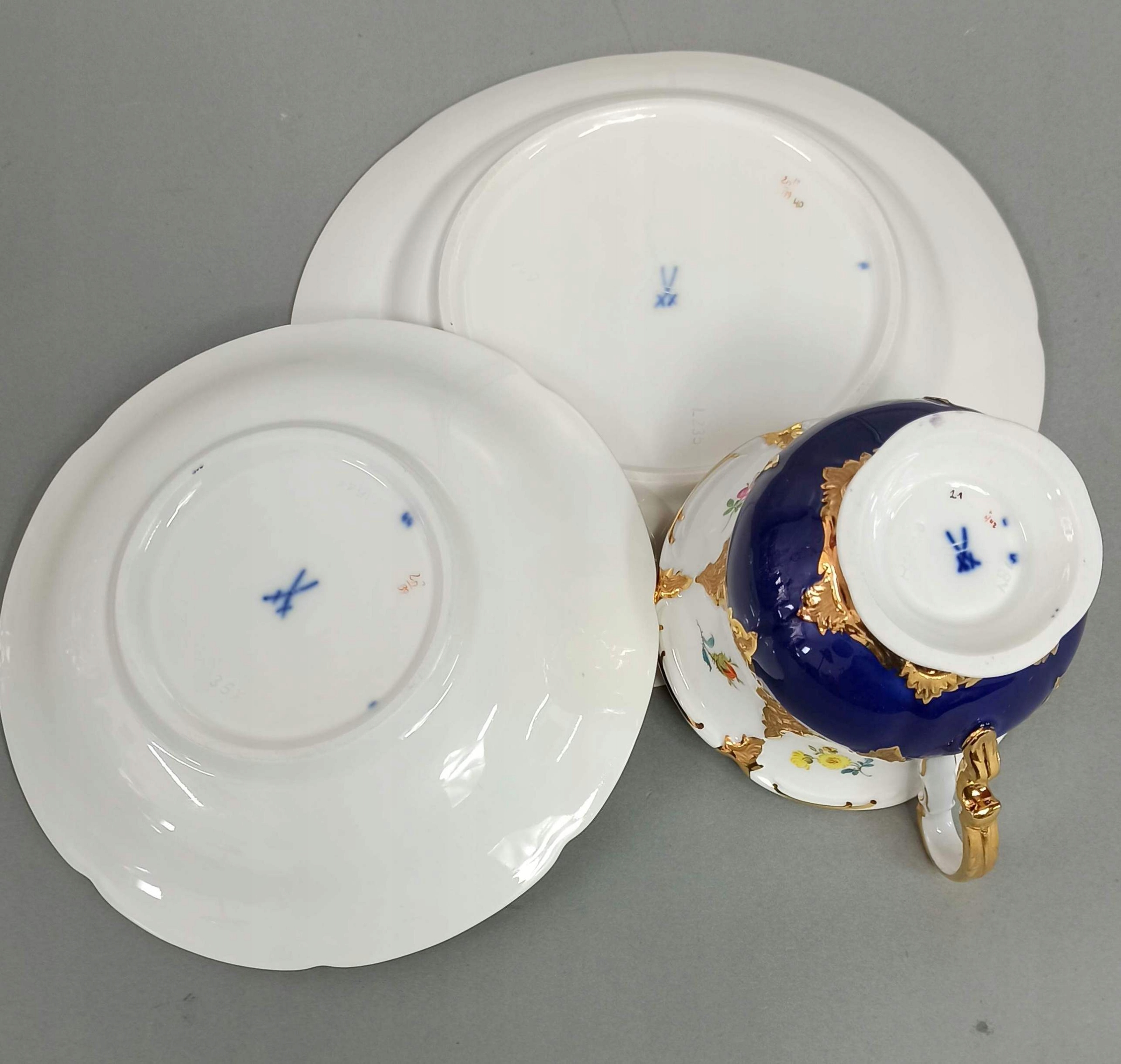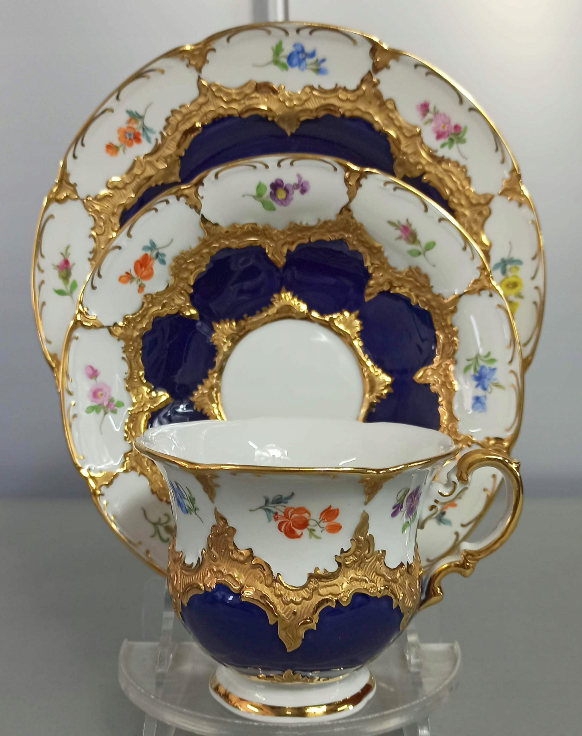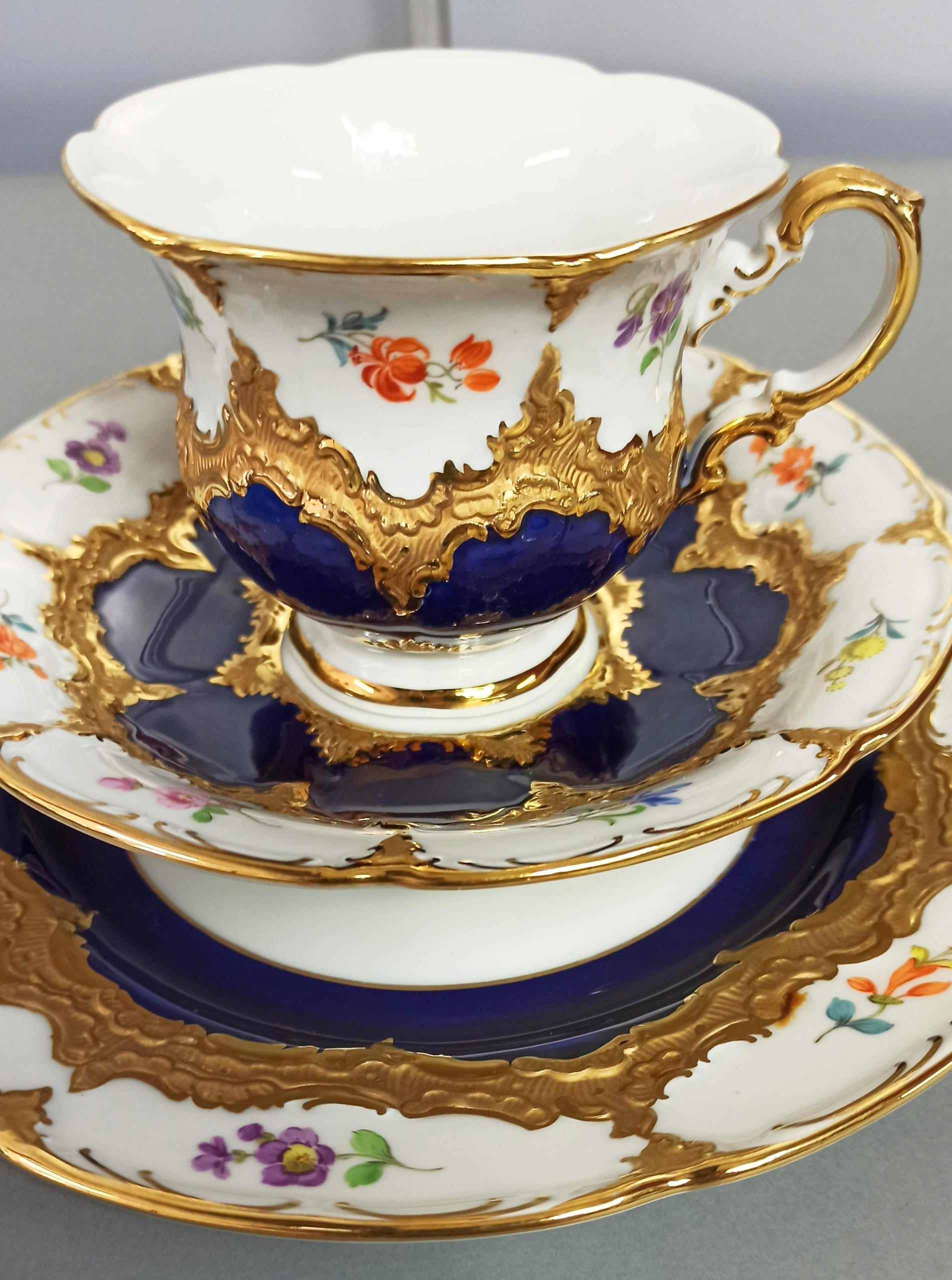 TRIO MIŚNIA B-FORM ZESTAW KOBALT KWIATKI MEISSEN