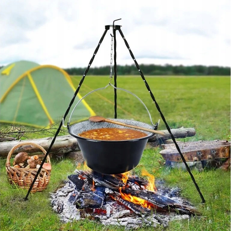 підставка виготовлена з високоякісної сталі, що впливає на її стабільність. ... регульована довжина ланцюга, щоб ви могли контролювати температуру приготування, підвищення або опускання горщика, решітка, каструля.
