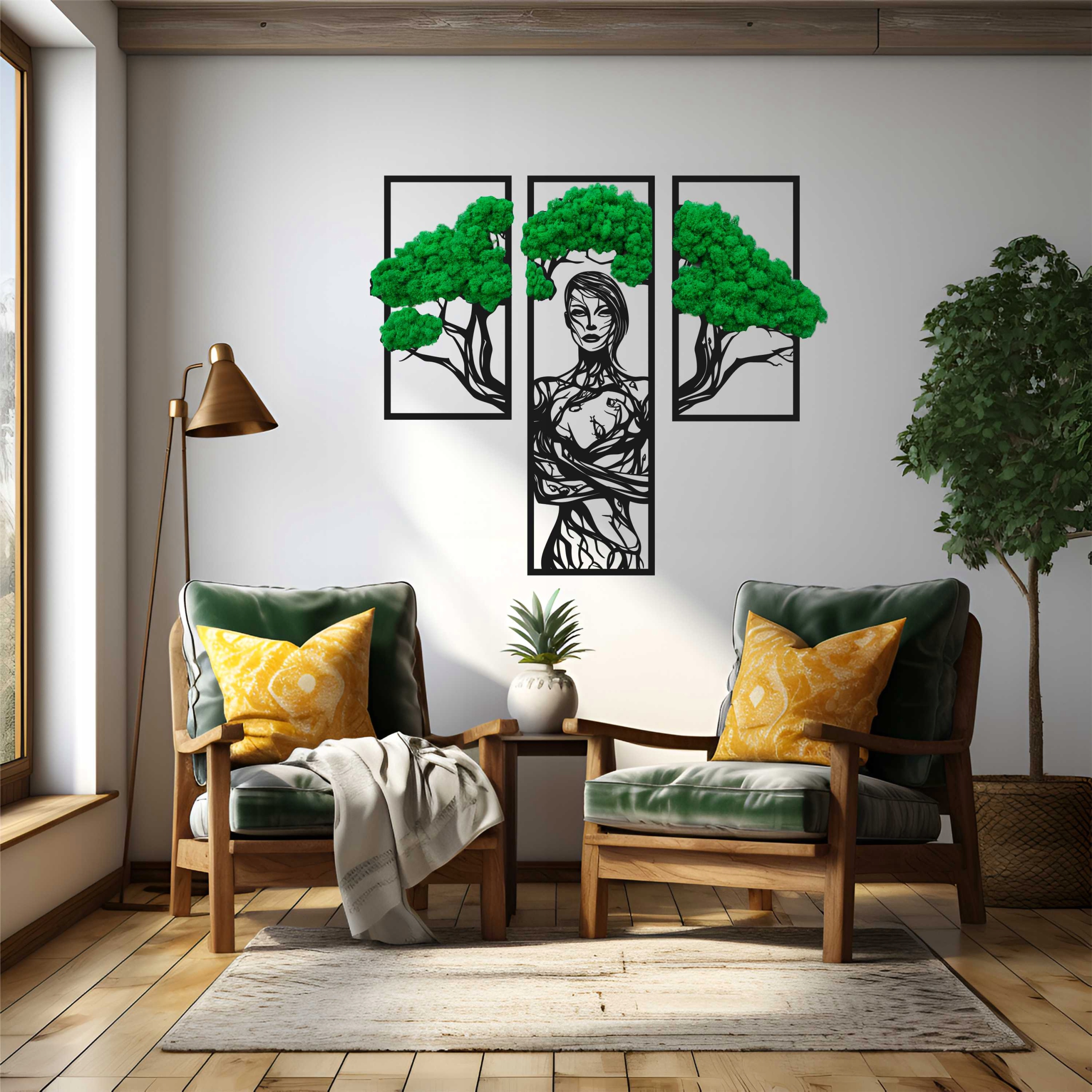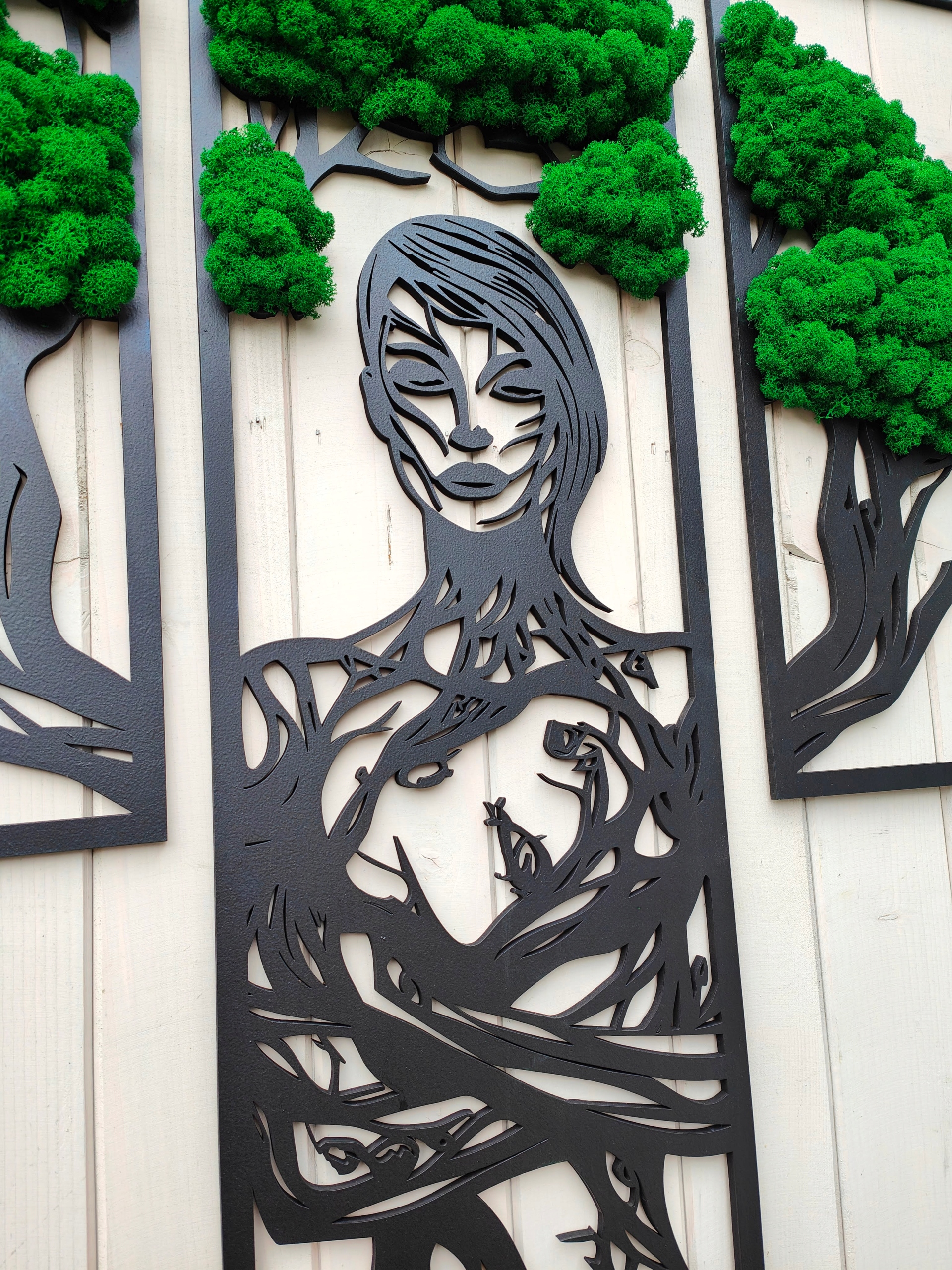 Триптих ДЕРЕВО з мохом мох 120х140см ЖІНКА дерево мох мох