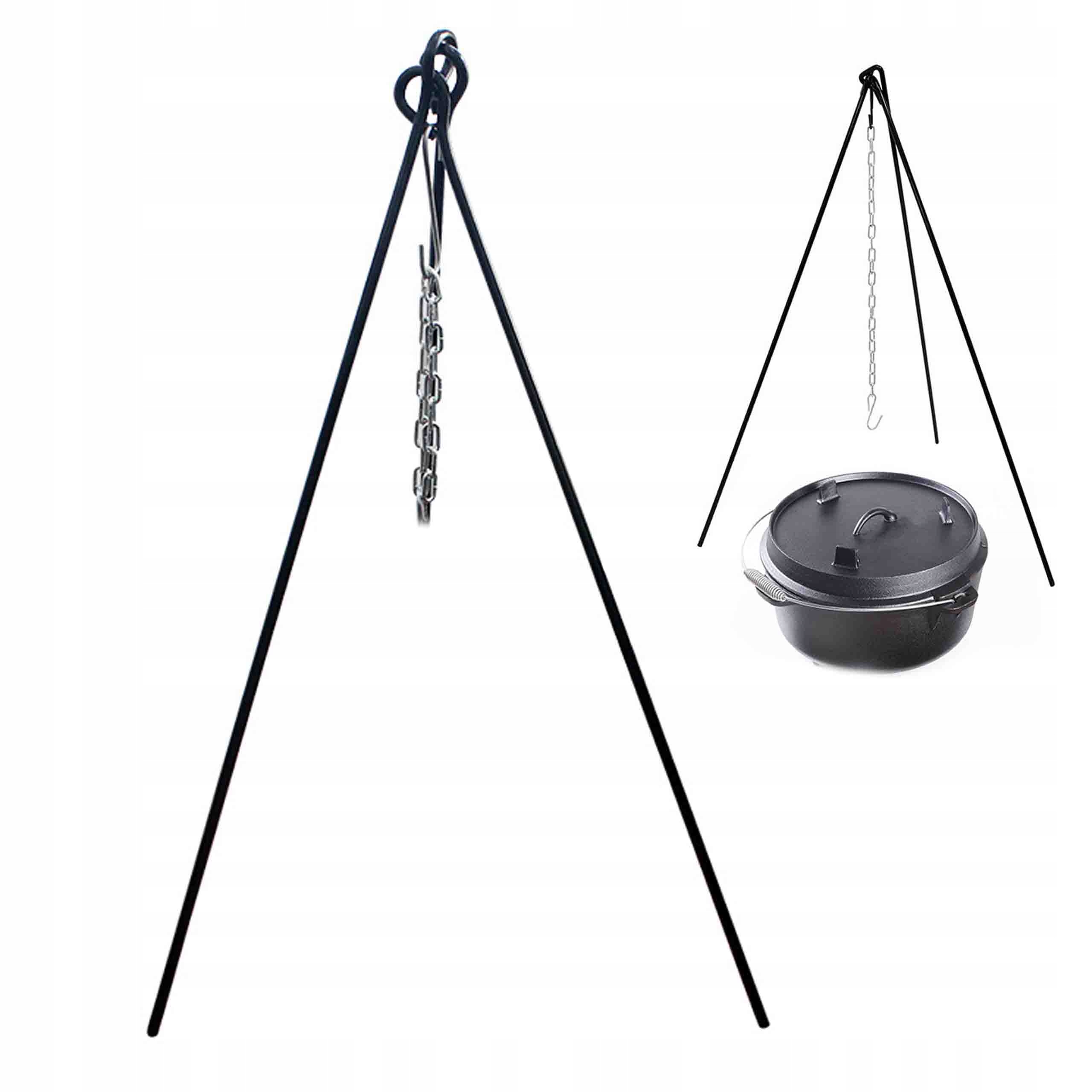 ✅ Представлений набір складається з твердого триногену. Штатив виготовлений з постійної порошкової сталі, що забезпечує стійкість до високих температур та погодних умов. Регульований ланцюг дозволяє регулювати висоту котла над багаттям, що дозволяє контролювати інтенсивність приготування.