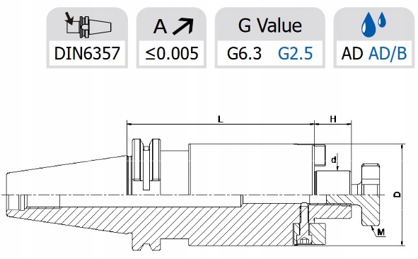 Тріщина фрезерування оправки 22 мм L160 SK40 DIN69871 з охолодженням