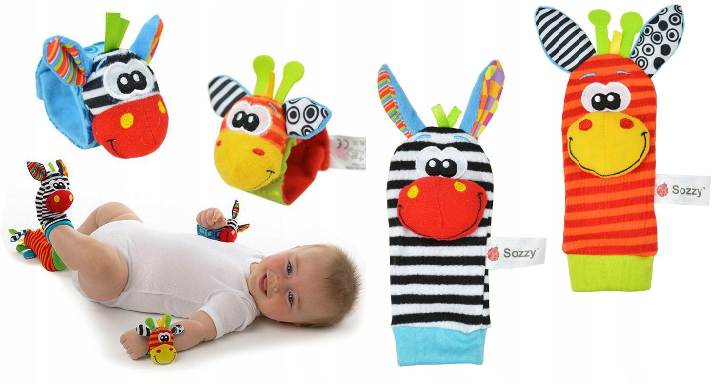 Дуже гарні та ніжні стрічки - застібаються на липучки, які не здавлюють руки. Яскраві яскраві кольори та контрастні візерунки спонукають малюка зосереджувати погляд, а м’які матеріали та різноманітні текстури стимулюють відчуття дотику малюка.