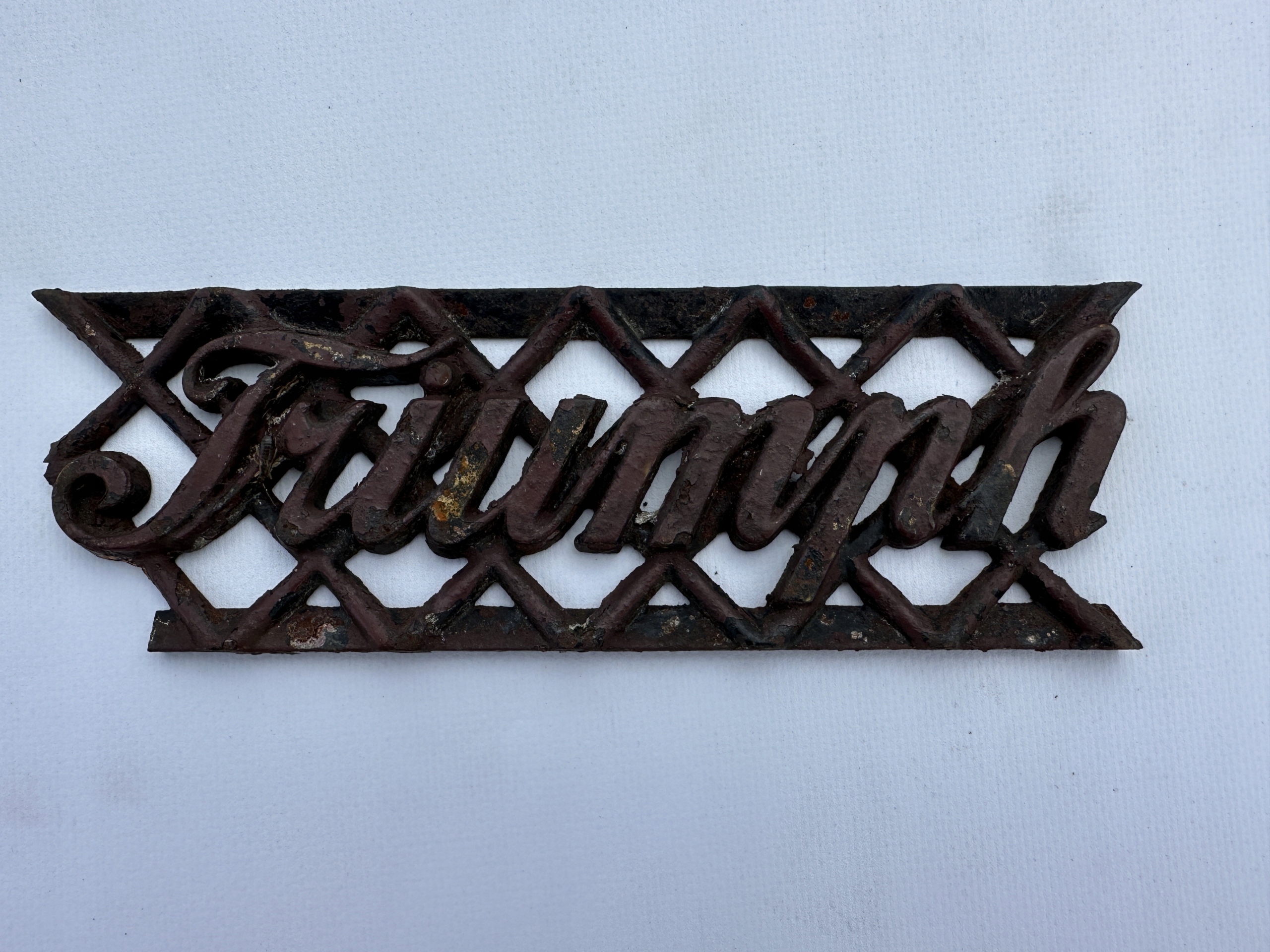 Предметом продажу є старий оригінальний логотип TRIUMPH. Предмет із чавуну. Взято зі старої бази швейної машинки. Дуже гарний візерунок. Стан - як на фото. Ідеально підходить як цікава прикраса.