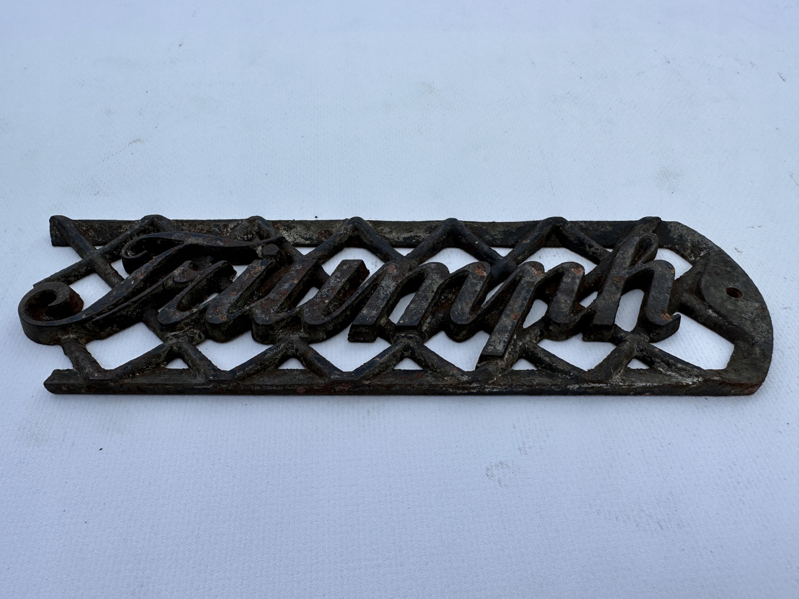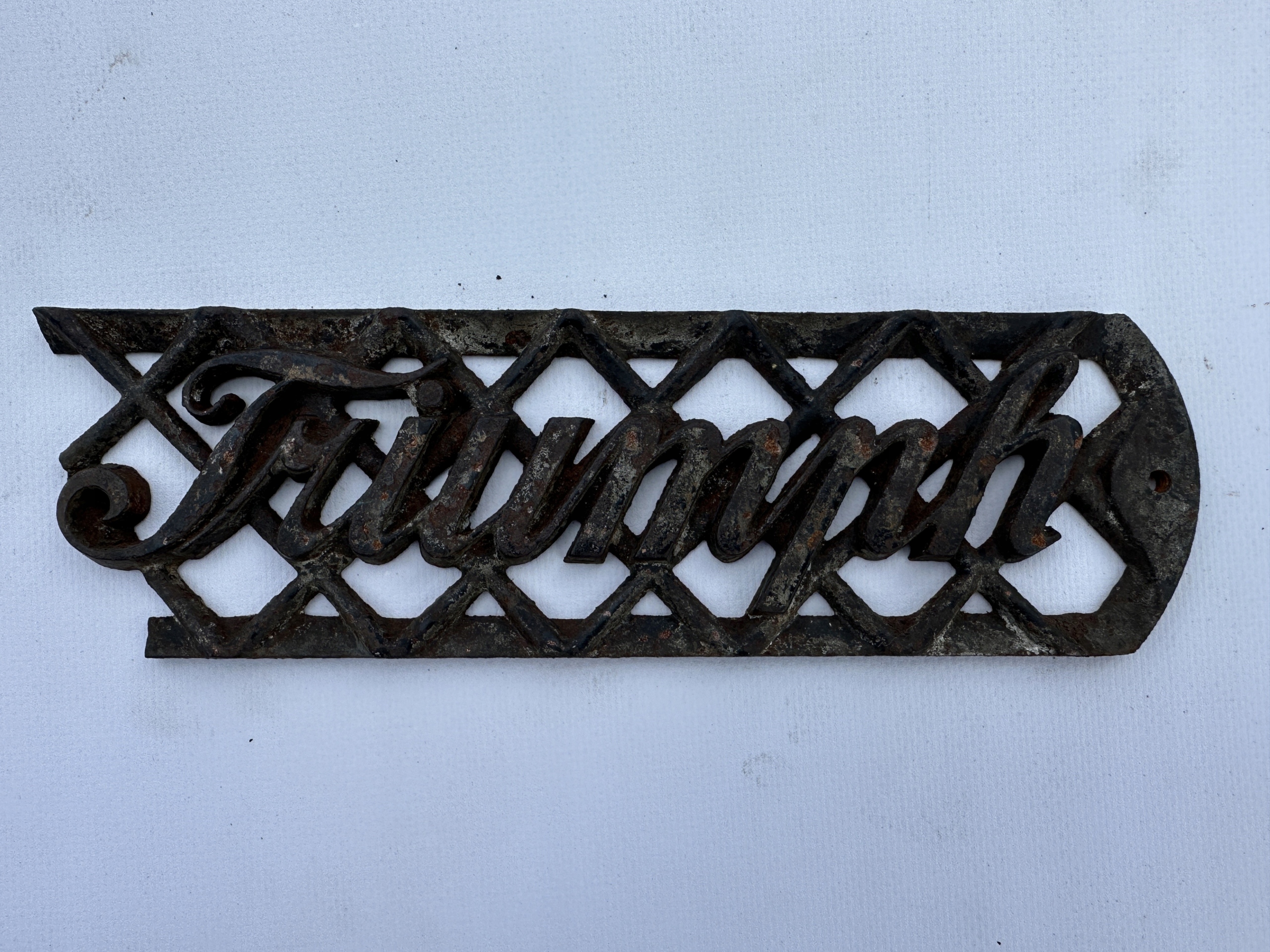 Предметом продажу є старий оригінальний логотип TRIUMPH. Предмет із чавуну. Взято зі старої бази швейної машинки. Дуже гарний візерунок. Стан - як на фото. Ідеально підходить як цікава прикраса.