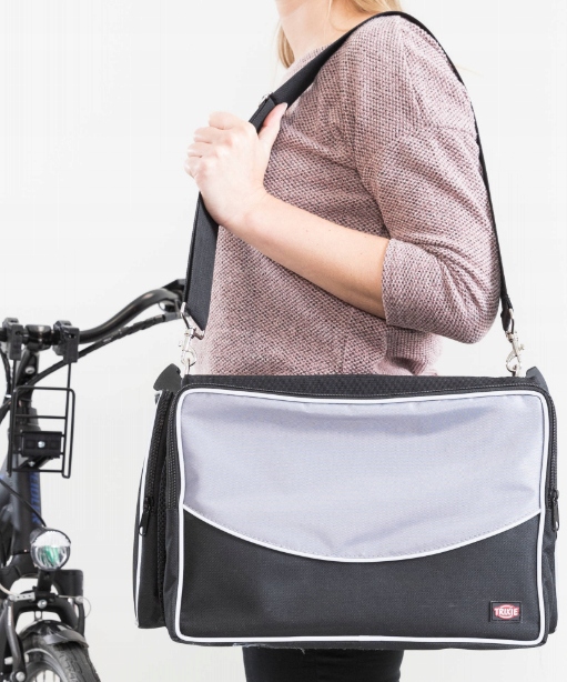 Переноска Trixie для перевезення собаки чи кота на велосипеді забезпечує комфорт і безпеку під час велосипедних подорожей. Завдяки вшитим ручкам її також можна використовувати як сумку або переноску.