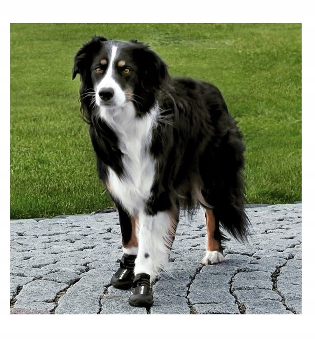 Trixie Walker Active. Взуття на трекінговій підошві ідеально підходить для занять спортом. Вони захищають лапи від льоду і солі, а також від кам'яної підлоги, слизьких поверхонь і гарячого піску. Підошва протиковзаюча, гарної форми. Взуття пропускає повітря завдяки сітчастому матеріалу. Допомагають при лікуванні порізів (знижують ризик інфекцій). Вони мають міцний ремінь з липучкою, який гарантує, що взуття залишається на місці. Вшиті відбивачі для більшої безпеки вночі.