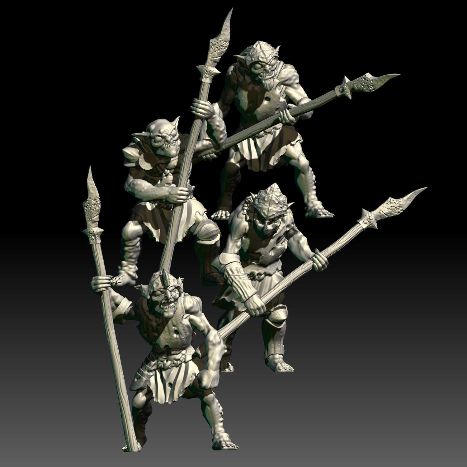 Військове королівство Troglodytes - Spear Warriors x4 - Сервісні фігурки 3D-друку для рольових або бойових ігор