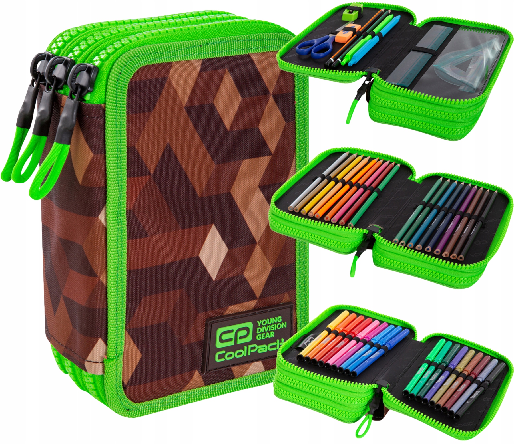 Пенал на 3 відділення на блискавці. Міцно виготовлений з високоякісних матеріалів у кожній деталі.Відділення пеналу мають гумові тримачі для шкільного приладдя - всередині повне обладнання Colorino.