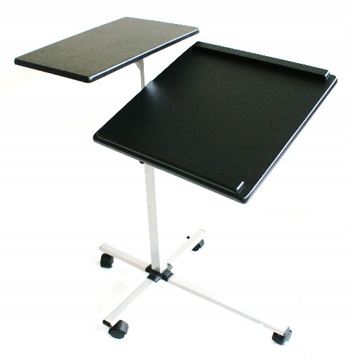 Верхній має регулювання кута нахилу та обмежувач, що запобігає ковзанню предметів, розміщених на ньому, наприклад ноутбук.