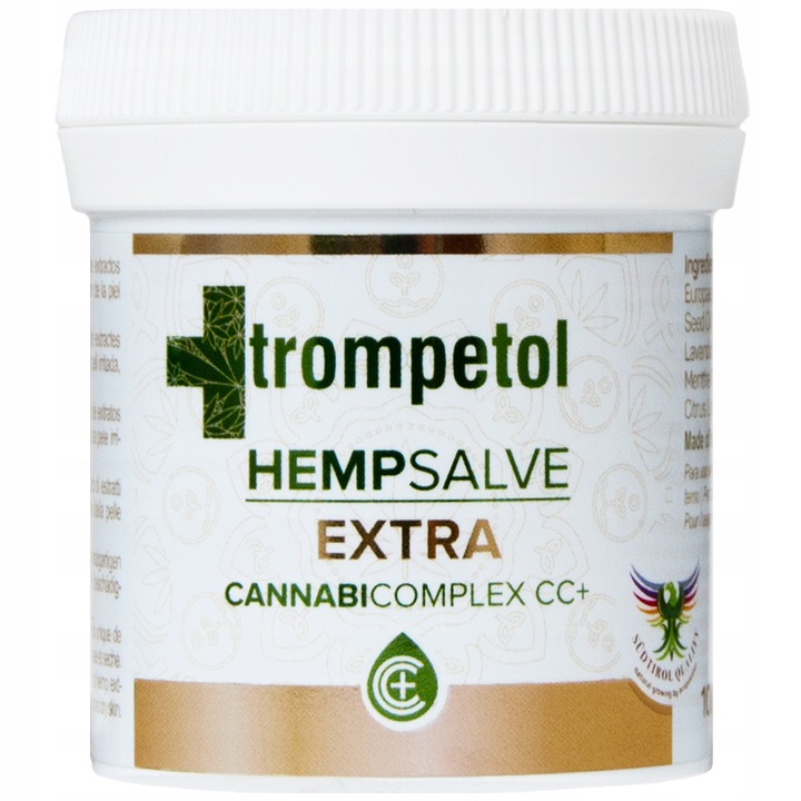 Тромпель - додаткова конопляна мазь - це суміш оливкової олії, холодного пресу насіння конопляної олії, виняткового екстракту конопель, надзвичайно багатий цінним канабіноїдами (зокрема каннабідіол CBD) та Cannabidiol Cbd) (зокрема каннабідоліол CBD) та Cannabidiol Cbd). Базовий компонент мазь канабісу - це найвищою якість медичного нафтового желе. Це дуже хороша шкіра, що регенерує конопля, мазь псоріазу, а також антифунгальна мазь.
