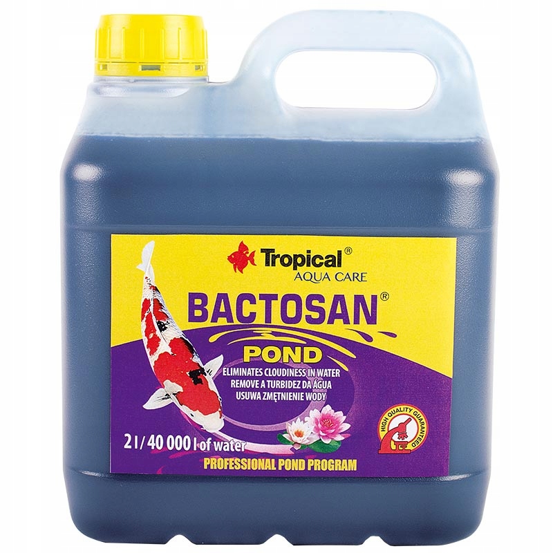Камутність води з'являється також у новостворених водоймах з невстановленою біологічною рівновагою. . BACTOSAN POND швидко і ефективно відновлює прозорість води, що покращує умови життя риб і естетичні цінності ставка. Однієї упаковки BACTOSAN POND (2 л) достатньо для відновлення прозорості 40 000 літрів води.