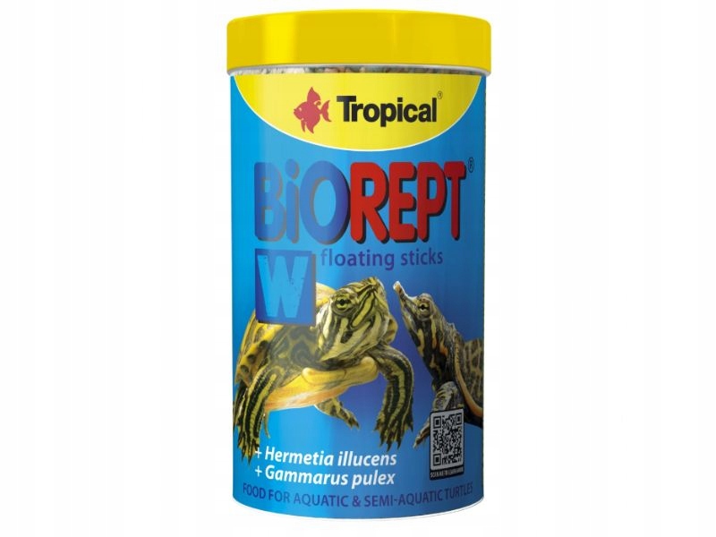 Черепахи, пов’язані з водним середовищем, є всеїдними та м’ясоїдними тваринами. Щоб задовольнити їхні потреби, ми підготували Biorept W - багатокомпонентний корм у формі стіків для щоденного прийому. До складу входять ракоподібні, в тому числі гаммарус, який збагачує їжу цінним білком, хітином і ненасиченими жирними кислотами (омега-3 і омега-6). Ця їжа була збагачена личинками Hermetia illucens (чорна солдатська муха). Це цінна сировина, багата незамінними амінокислотами, жирними кислотами, макро- і мікроелементами. Він містить добре засвоюваний кальцій, фосфор і магній, які відіграють важливу роль у розвитку та підтримці кісток. Він має сприятливе співвідношення між кальцієм і фосфором, нечуване для інших комах. Концентрація кальцію в Hermetia illucens набагато вища, ніж у молоці. Чудовий смак паличок викликає охочу у тварин. Вітаміни та мікроелементи, що містяться в кормах, забезпечують правильний розвиток кісток і панцира черепах, запобігаючи деформаціям та іншим серйозним проблемам зі здоров'ям.