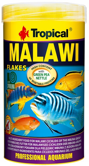 Багатокомпонентний пластівцевий корм із високим вмістом рослинних інгредієнтів (шпинат, кропива, спіруліна, зародки пшениці тощо), призначений для щоденного годування равликів мбуна з озера Малаві.