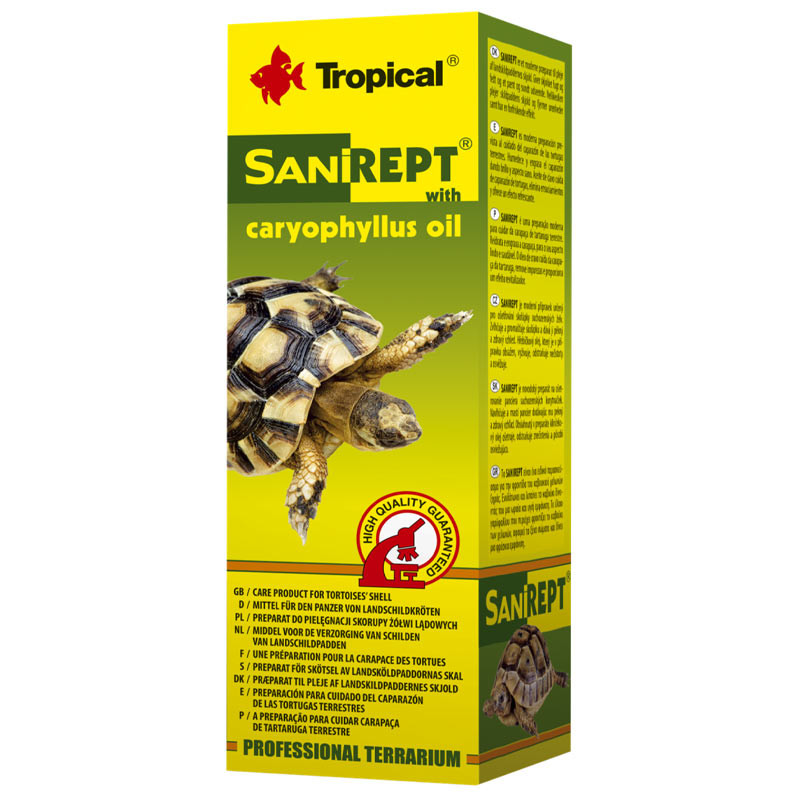 Панцир черепахи - дзеркало її стану. Погане харчування, дефіцит вітамінів і мінералів, а також проблеми з нирками призводять до незворотних деформацій панцира. Тому догляд за панциром черепахи включає багато факторів. Тваринам необхідно створити належні умови утримання (просторний і чистий тераріум, відповідну вологість, температуру та освітлення), різноманітне та збалансоване харчування, багате кальцієм і вітаміном D3, утримувати в чистоті панцир. Після кожного купання черепах рекомендуємо змащувати панцир Санирептом з екстрактом гвоздики, що додасть йому гарного блиску та здорового вигляду. Гвоздикова олія, що міститься в препараті, має антисептичну дію, відлякує паразитів і обмежує розвиток кліщів і найпростіших.