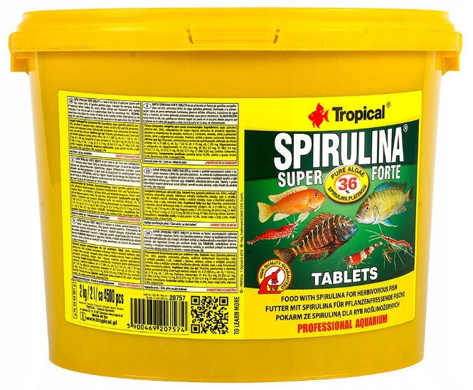 овочева їжа у вигляді самодостойних таблеток з високим вмістом спіруліни. Призначений для молодих африканських медсестер та інших маленьких риб, включаючи морську рибу, що вимагає значної участі інгредієнтів рослинного походження. Таблетки, приклеєні до склянки акваріумів, полегшують спостереження за годуванням риби, а на дні розміщені їжею для рибної зони риби та ракоподібних. Спіруліна стимулює імунну систему риби і позитивно впливає на травні процеси. Це джерело ненасичених жирних кислот, легко поглиненого білка, багатий екзогенними амінокислотами, вітамінами та мікроелементами, які забезпечують рибу відмінним станом, інтенсивним ростом та життєвою силою. Регулярне використання означає, що кольори риби, завдяки каротиноїдам, що містяться в спіруліні (включаючи бета-каротин), набирають інтенсивність та пишність