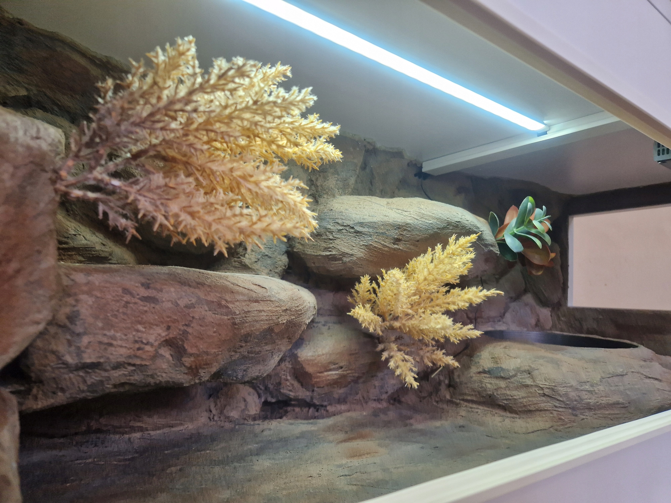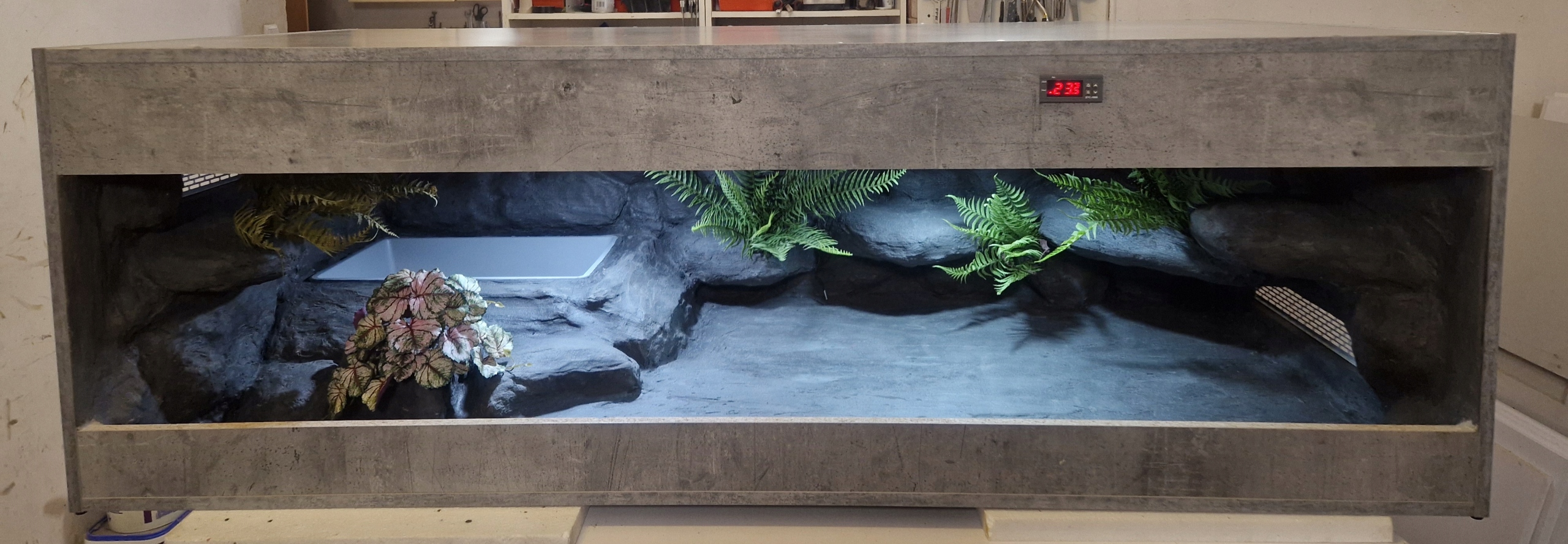 - На фотографіях представлені тераріуми, виготовлені нами на індивідуальне замовлення і можуть бути зразком для наступних робіт. Тераріуми, які ви замовляєте, не будуть копіями представлених нижче, але вони можуть бути схожими. Ми будуємо кожен танк з нуля. Покупець може вибрати розташування каменів (якщо це можливо) і колір фону тераріуму.