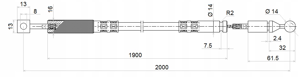- Квадратне вушко з діаметром отвору 8 мм і діаметром рифленого корпусу 13 мм.