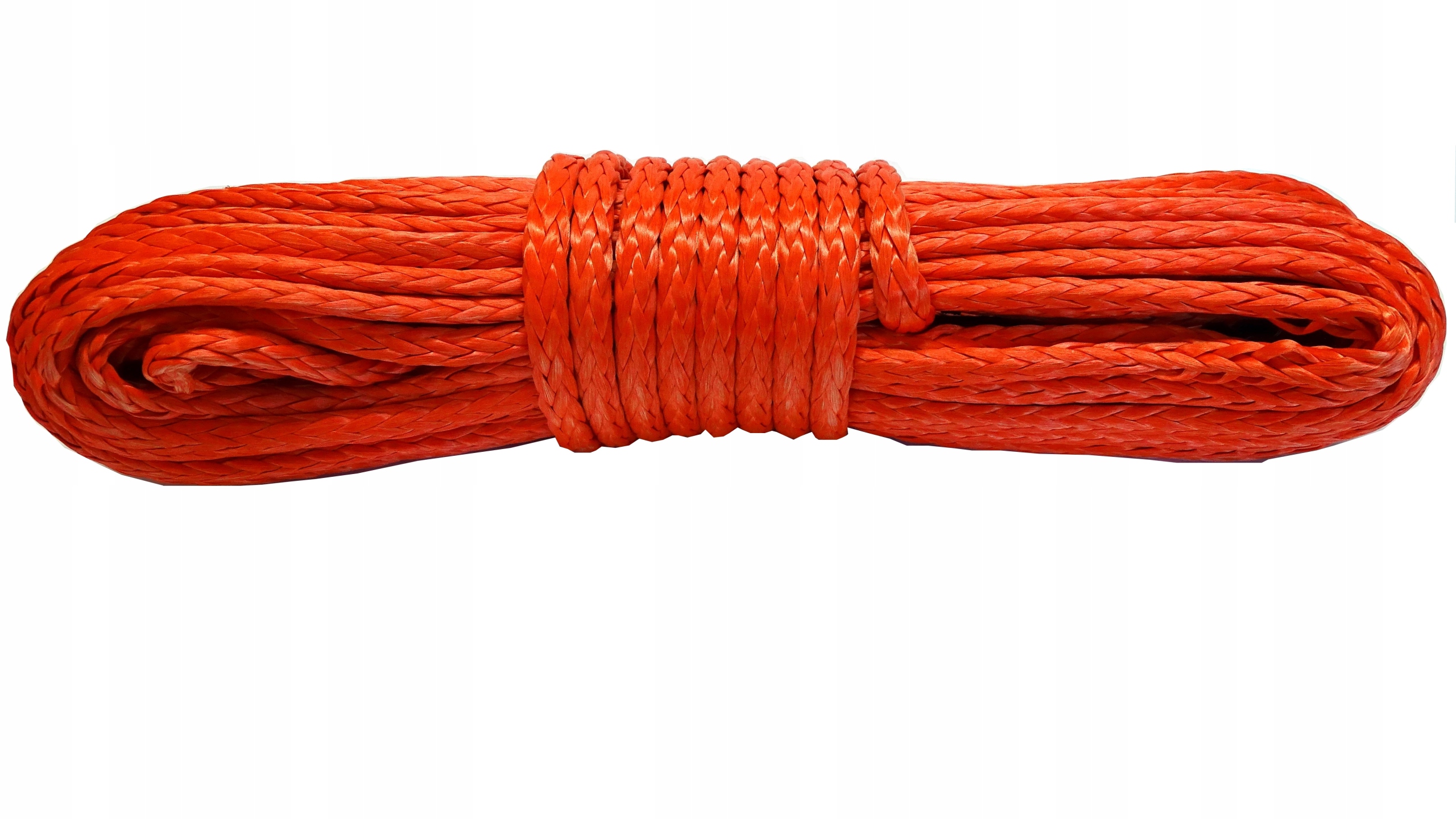 Синтетична мотузка виготовлена з волокон, готова до надягання, має кріплення барабана, коушок з гачком і захисну втулку.