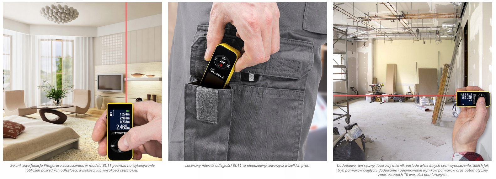 Практичний, мініатюрний, лазерний метр BD11 має, незважаючи на скромний розмір, повне обладнання.