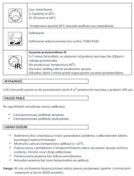 Просте застосування. Короткий час затвердіння. Дуже хороша ізоляція ґрунтовок і фінішних покриттів від наповнювачів.