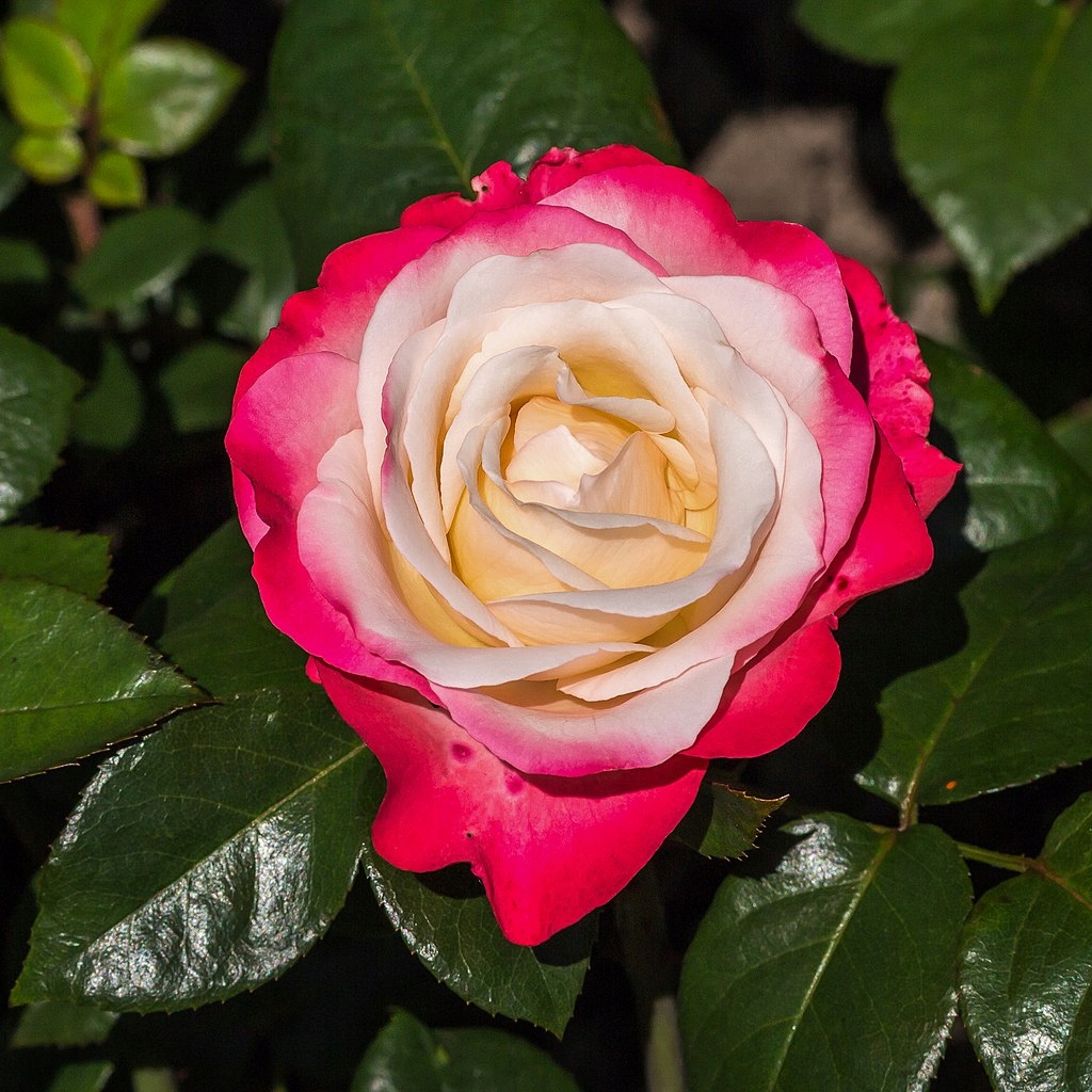 Одна з найкрасивіших ностальгійних троянд із чудовими двоколірними ароматними квітами.