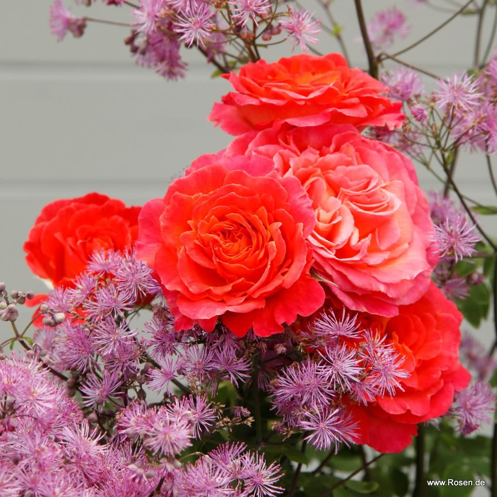 Це нова великоквіткова троянда, яка завдяки дрібній для цієї групи структурі та рясному цвітінню може бути віднесена до бордюрних. Красивий, інтенсивний колір квіток дуже помаранчевий з червоним і жовтим відтінком на нижній стороні пелюсток. Квітки дуже повні, гарної форми, досить середнього розміру, розпускаються в невеликих суцвіттях. Пелюстки злегка заглиблені по краях, як волани, красиво лягають і довговічні. Ніжний, злегка відчутний аромат. Темне, блискуче листя підкреслює колір квітів і надзвичайно здорове.