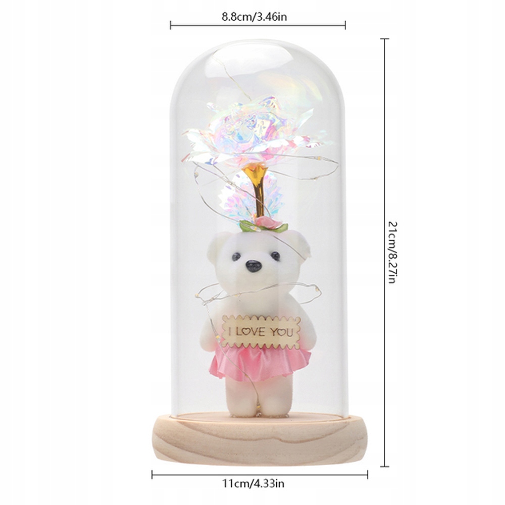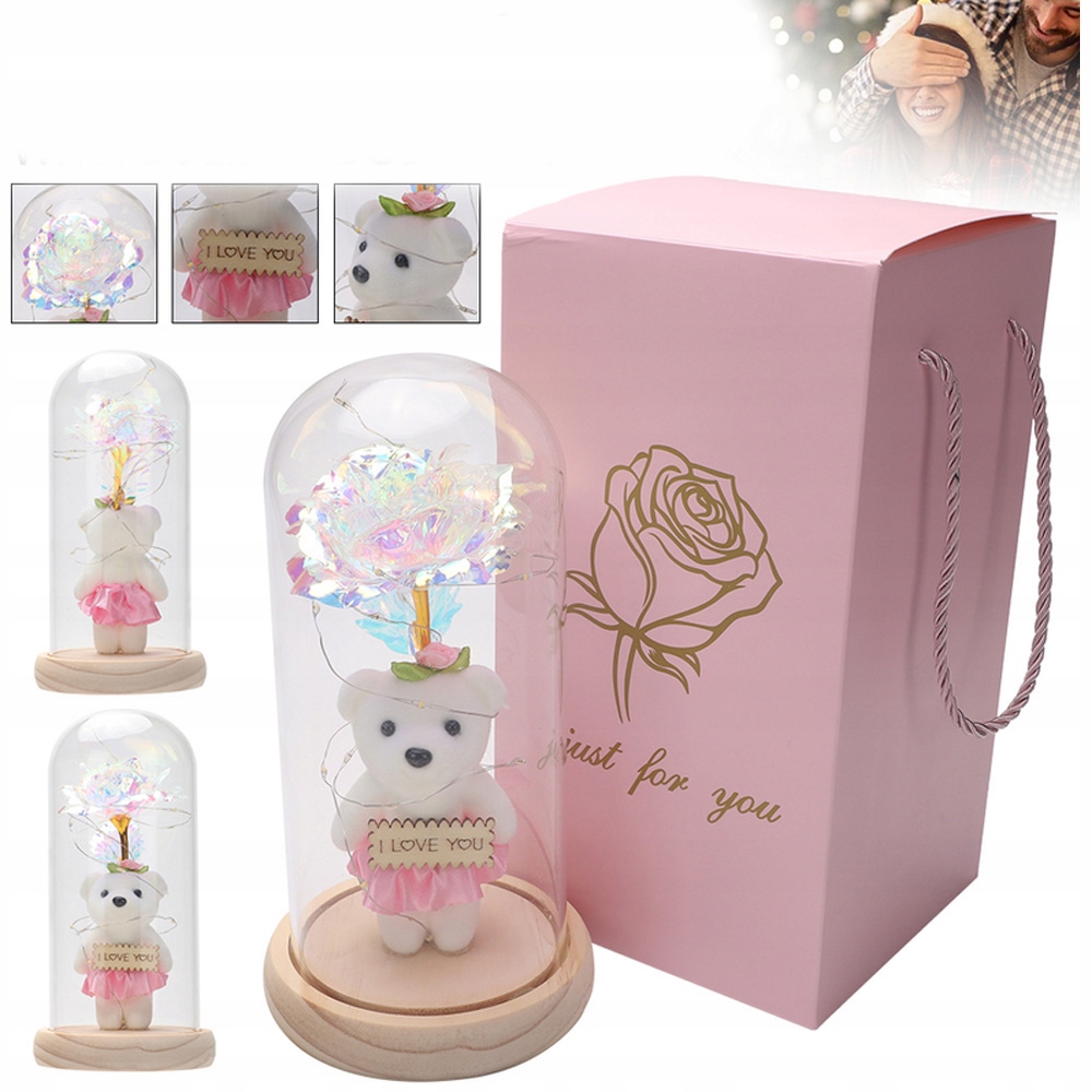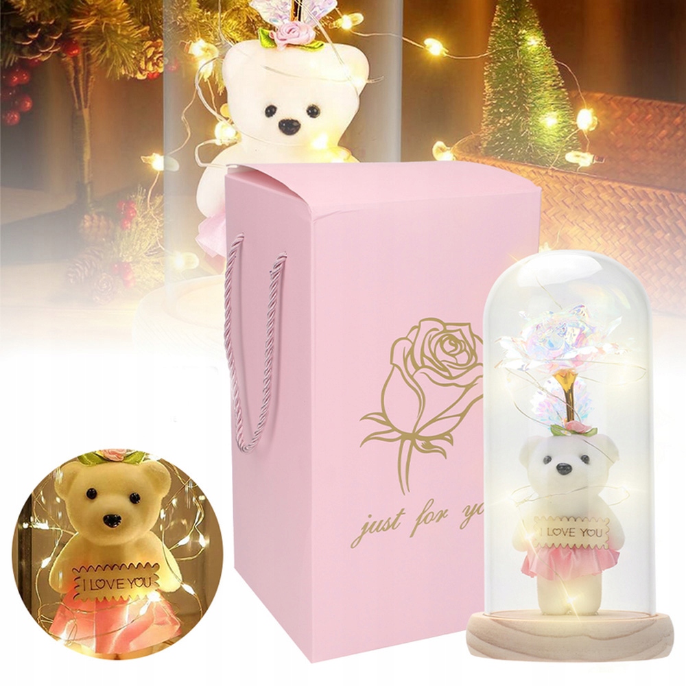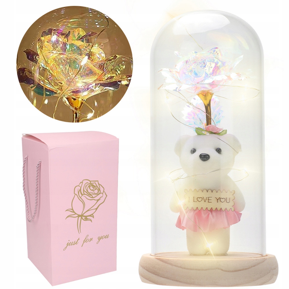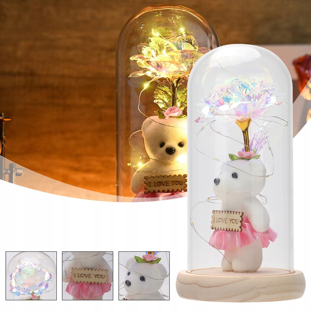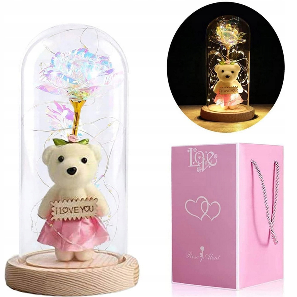 ТРОЯНДА В СКЛЯНОМУ КУПОЛІ, ПОДАРУНКИ ДЛЯ ЖІНОК, ВЕДМЕДИК СВІТЛЕНА ТРОЯНДА
