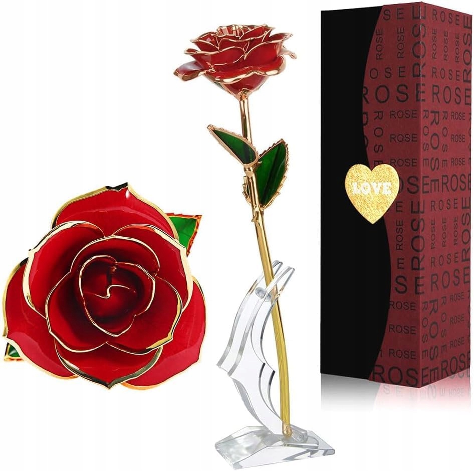 Ця троянда, оздоблена золотом і сяючим відтінком, символізує любов, чарівність і унікальність. Кожна троянда ретельно упакована, щоб не пошкодити делікатний виріб, у красиву подарункову коробку, що покращує якість подарунків. Включає підставку для демонстрації. Це показує вашій коханій людині, що ваша любов і прихильність до неї такі ж глибокі й цінні, як золото, яке прикрашає троянду.