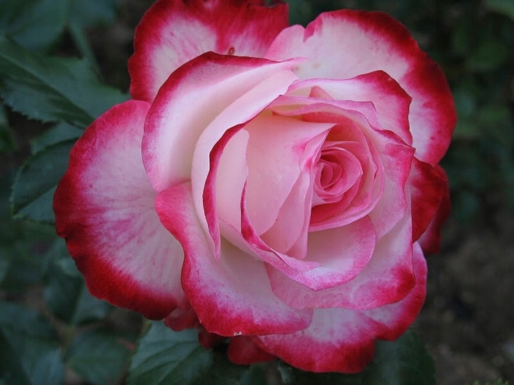 відбитки троянд , двоколірні, білі квіти з червоним берегом, повним, солодким фрагантним. Квіти в букетах протягом усього сезону. Будинок 50-70 див. Різноманітність, яка привернула увагу двоколірними квітами. Рідкість! Він має товсті прямі пагони, закінчені поодинокими квітами на сильних педюнклах. Квіти дуже великі, повні, близько 35 білих пелюсток з рожевими краями. Листя темно -зеленого, великого і блискучого, цвітуть усе літо. Він стійкий до грибкових захворювань. Рекомендовані для садових посадок, він також підходить для зрізаних квітів.