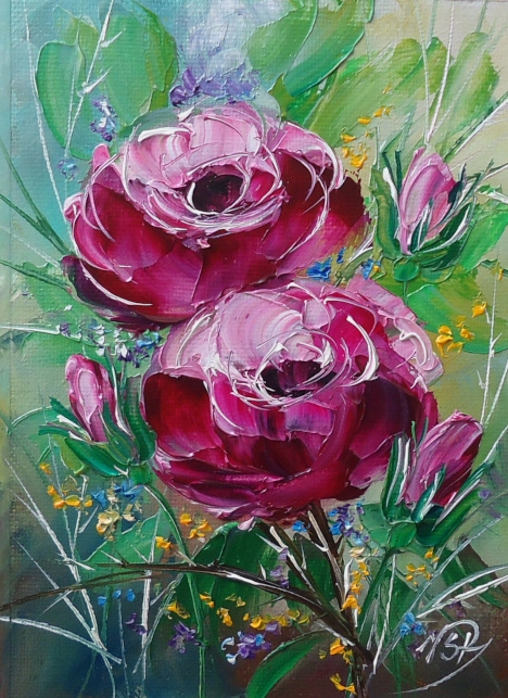 Троянди Viola Sado R мініатюра полотно, олія 13x18 VIOLAART