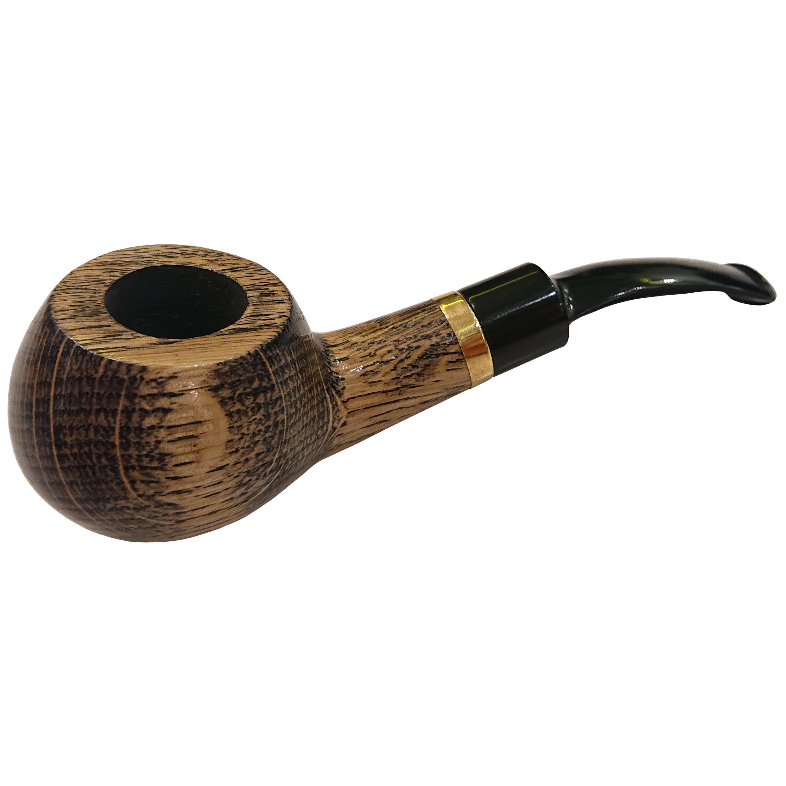 Дубова люлька вишукано виготовлена, мундштук люльки трохи зігнутий.