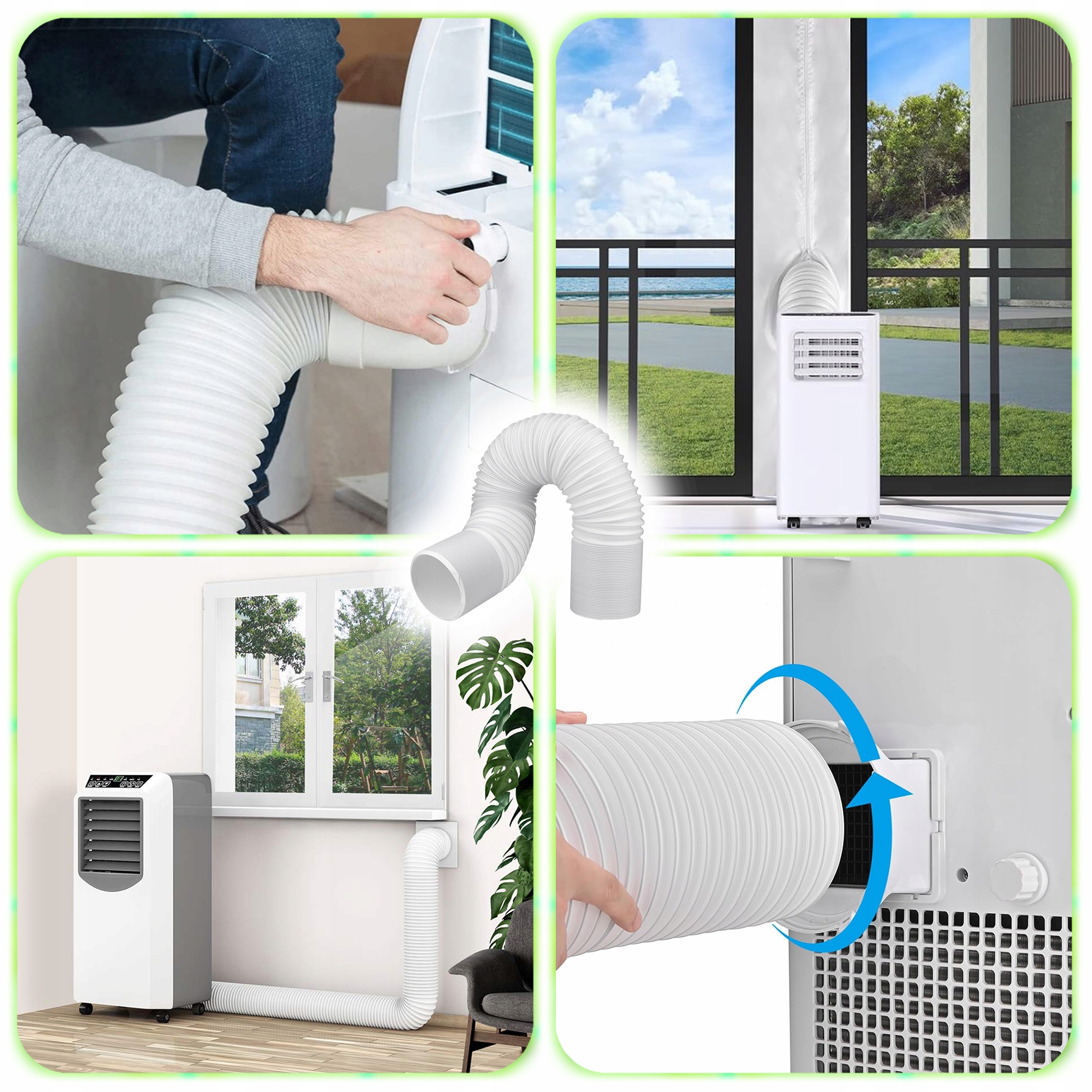 підходить для більшості мобільних кондиціонерів, вентиляторів та екстрактів повітря . Його можна використовувати в домашніх умовах, офісі, каравані, складі або гастрономії. Для кращого пристосування ви можете використовувати затискач (не включено).