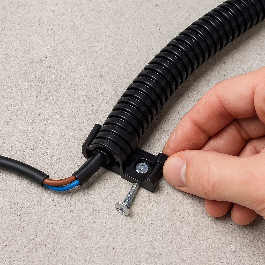 - Підвищує безпеку: Захищає кабелі від пошкодження, що зменшує ризик короткого замикання, перенапруги та пожежі.