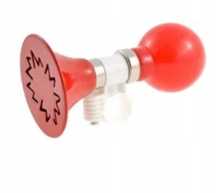 Червона велосипедна труба для попередження пішоходів під час їзди на велосипеді. Труба видає гучний звук, привертає увагу до маленького велосипедиста і дає йому додаткову радість на велосипеді. Він виготовлений з пластику. Зручна збірка, відкрита затискача, негайно припускається в пункт призначення без необхідності розбирати елементи керма.