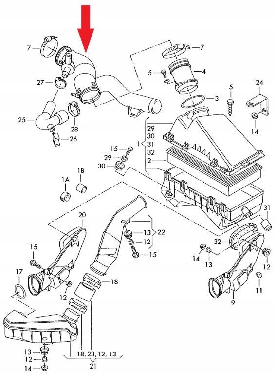 ТРУБА ПОВІТРЯНОГО ФІЛЬТРА ВАНТАЖНИЙ ВХОД AUDI A3 8L 97-03
