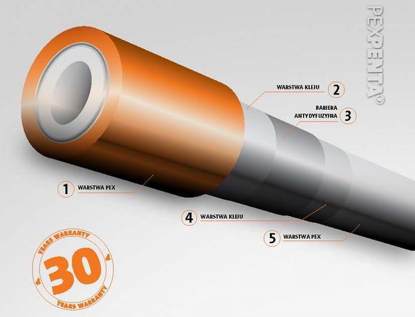 Труба PEXPENTA – перша труба з повністю закритим кисневим бар’єром, розроблена для забезпечення найвищої якості та надійності в системах теплої підлоги. Виготовлений відповідно до найсуворіших стандартів якості, він піддається випробуванням на газопроникність. PexPenta перевіряється міліметр за міліметром завдяки лазерній технології в процесі виробництва. 5 шарів труби PexPenta екструдуються одночасно, що є її унікальною особливістю. Потім електронно-променеве зшивання зміцнює трубу, забезпечуючи не тільки її міцність, але й гнучкість. На трубу PexPenta поширюється 30-річна гарантія.