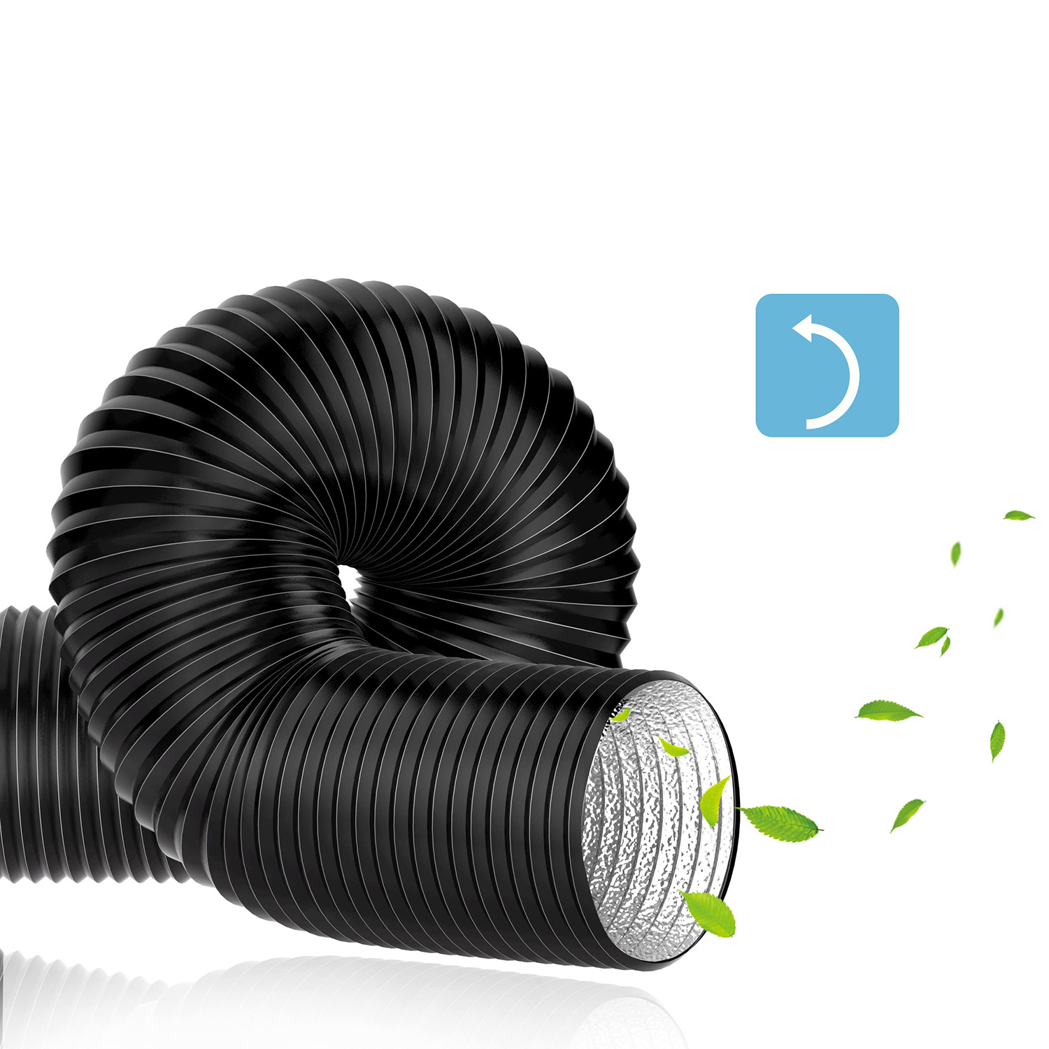 - Вентиляційна труба покрита плівкою ПВХ, водонепроникною, стійкою до вицвітання та тріщин, що ефективно зменшує шум.