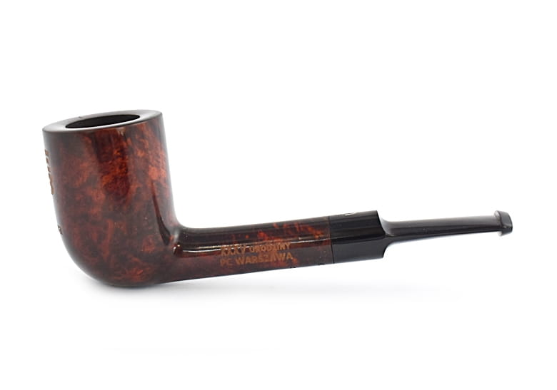 Біарна головка з гладкою поверхнею має гладко відполірований фрагмент, на якому вигравірувано емблему клубу PIPE на передній частині трубки та на шийці XXXV Urodziny PC Warszawa. Красиве зерно шипшини видно на ідеально відполірованій гладкій поверхні. Довге і тонке горлечко плавно перетікає в акриловий мундштук. Проста трубка, яка ідеально поміщається між пальцями. Попередньо вуглекислий димохід забезпечить захист від занадто швидкого прогоряння, тому прослужить курцеві довго.