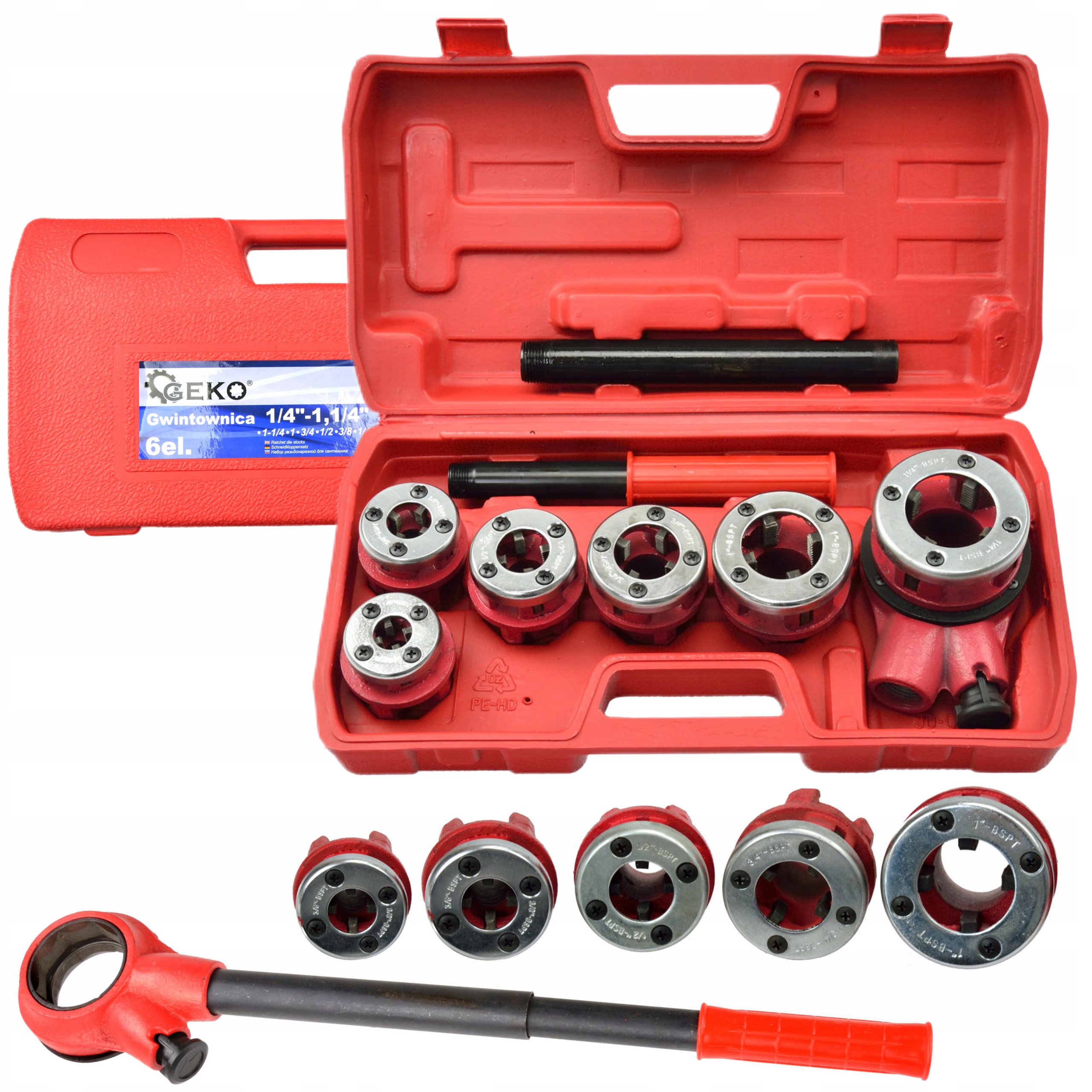 Нитка гідравлічної трубки в наборі з 6 Norins. Пристрій використовується для нанизу труб та фітингів. Він буде використаний як під час оновлення, так і на будівельному майданчику. Нитки зуби, виготовлені з сталі з легкої сплави CRV, з твердістю HRC в діапазоні 58-62. Катерний корпус.