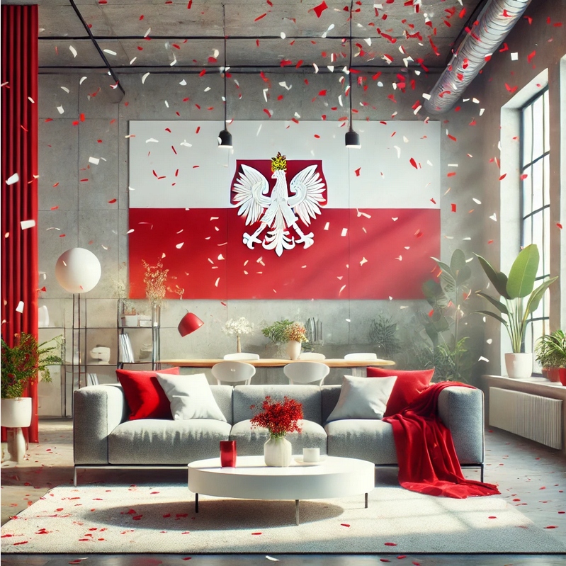 Трубчаста віялова гармата, що стріляє біло-червоним конфетті, матч Польща 28см