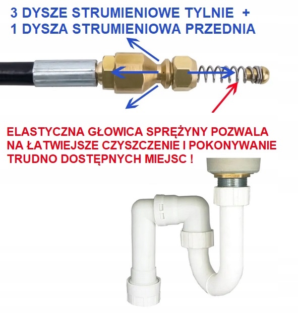 Пружина, встановлена на кінці насадки, допомагає легко вставляти шланг у вигини труби!