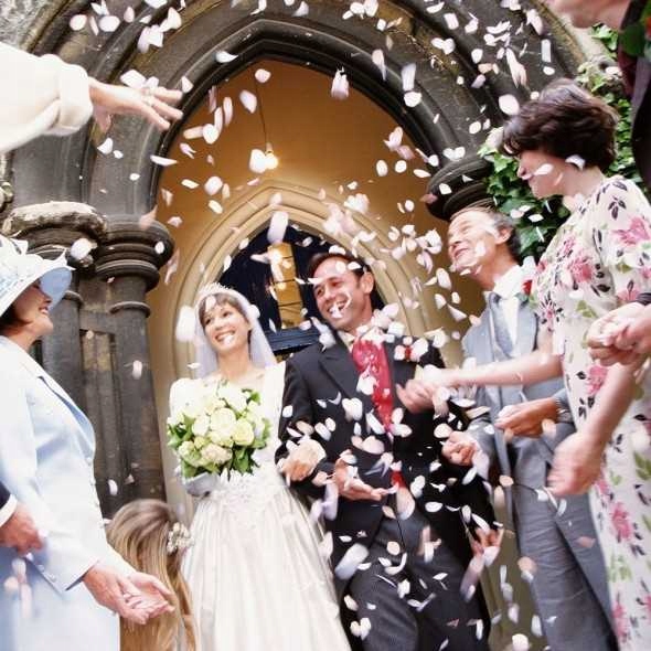 Зйомка з труби з рожевими пелюстками створює чудовий ефект, коли наречений і наречена виходять з церкви або в кінці першого танцю.