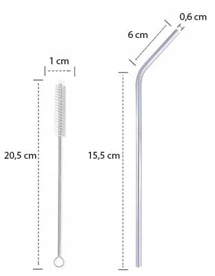 Багаторазові соломинкидозволять замінити звичайні пластикові соломинки на нові - стильні та екологічні. Металеві труби відмінно підійдуть для будинку, бару або кафе. Ви також можете їх подарувати, що порадує багатьох любителів напоїв та екологічного способу життя. Екологічні соломинки є продуктом багаторазового використання, завдяки засобу для чищення, що входить до комплекту, ви легко зможете їх ретельно вимити після використання.
