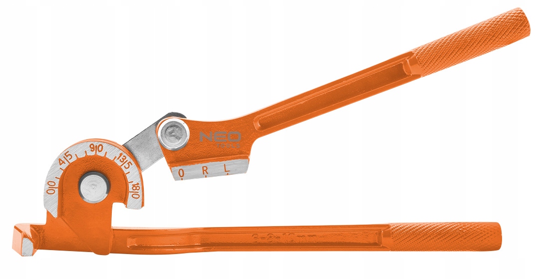 Трубогиб 3 в 1 - 6, 8, 10 мм від NEO - це пристрій, призначений для формування та згинання труб залежно від потреб. Рекомендується для роботи з алюмінієвими та мідними матеріалами та діаметрами труб: 6 мм; 1/4", 8 мм; 5/16", 10 мм; 3/8". Він характеризується діапазоном згинання 0 - 180 градусів і оснащений шкалою методу згинання L/R і шкалою ступеня згинання, розташованої на головці. Корпус інструменту виготовлений з міцного та легкого алюмінієвого сплаву .
