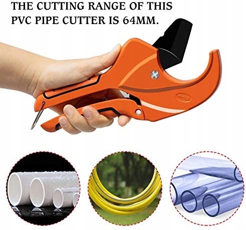 - [Функція брязкальця]: труборіз із храповою функцією, з максимальним отвором 64 мм, труборіз із пластиковою трубою різак може легко різати труби та підвищувати ефективність роботи.